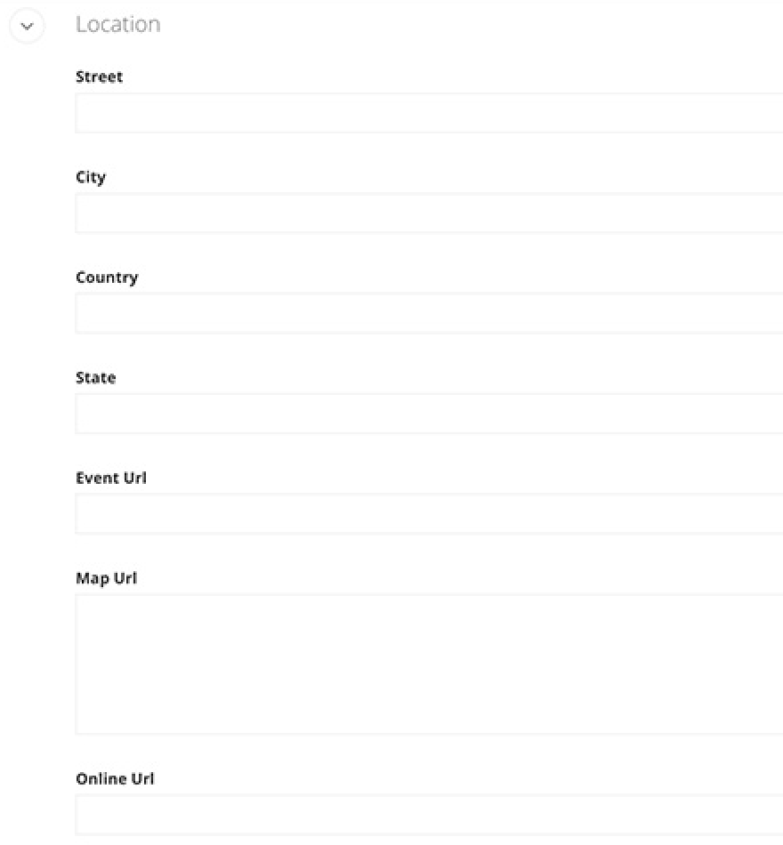 Recommended for in-person events. Enter the address of the Event into Google Maps, click the share icon, copy the link and paste it into the Map URL field.