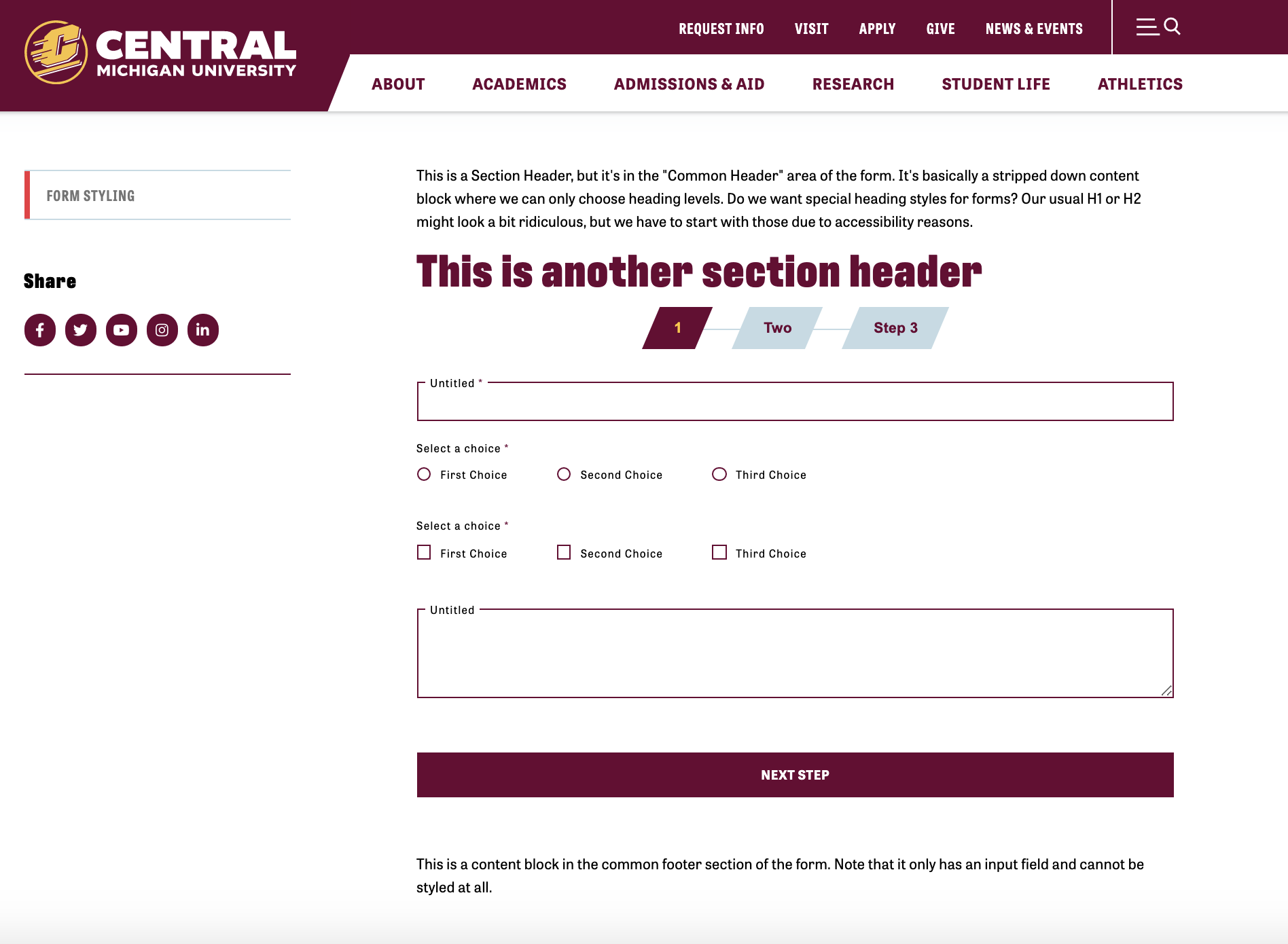 Forms can be created to help your audience request information, sign up for events or workshops, and connect with your office or department.
