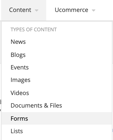 To access the Forms area of Sitefinity, in the top menu click on Content and select Forms from the drop down menu.