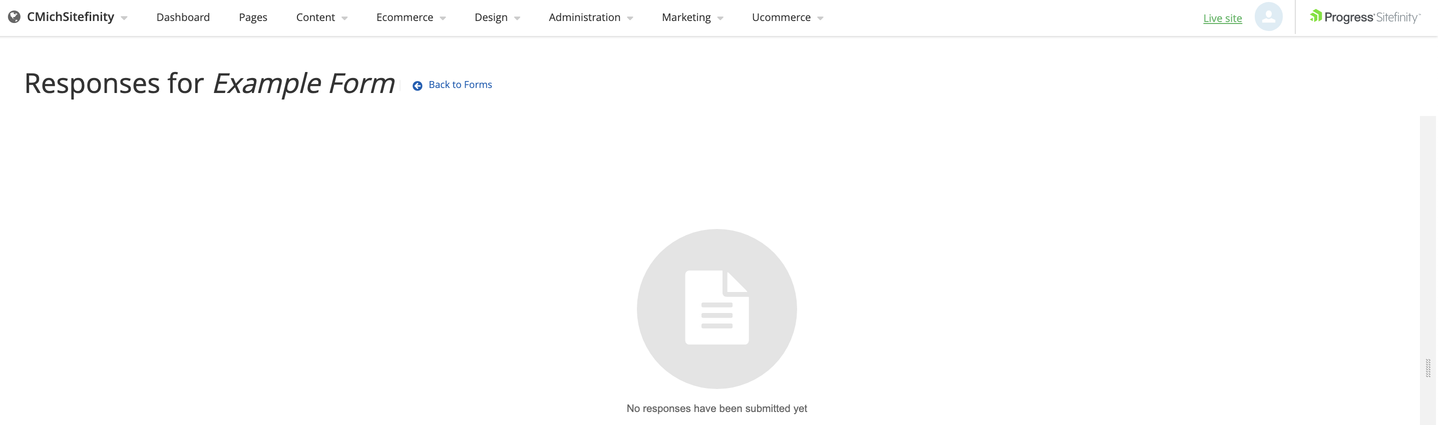 IMPORTANT INFORMATION ABOUT FORM RESPONSE ANONYMITY: The owner of a Sitefinity form is able to access form responses even if the email set up to receive form response notifications is different than that owner’s email address. When a “group” email address is used for form response notifications, any of the individuals with access to the group email would have access to the form responses as well. Additionally, all digital strategists in University Communications are able to access all form responses.