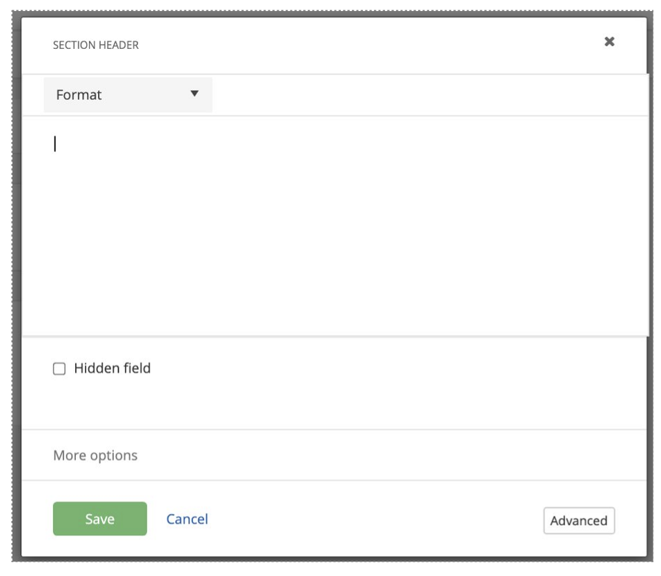 - Type the name of the section into the text box, using the H2 or lower. H1 should not be used.