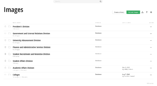 2. The structure of the Image Library is organized by major divisions within the university, with sub-libraries nested under those units. Again, please do not create new, top-level libraries.