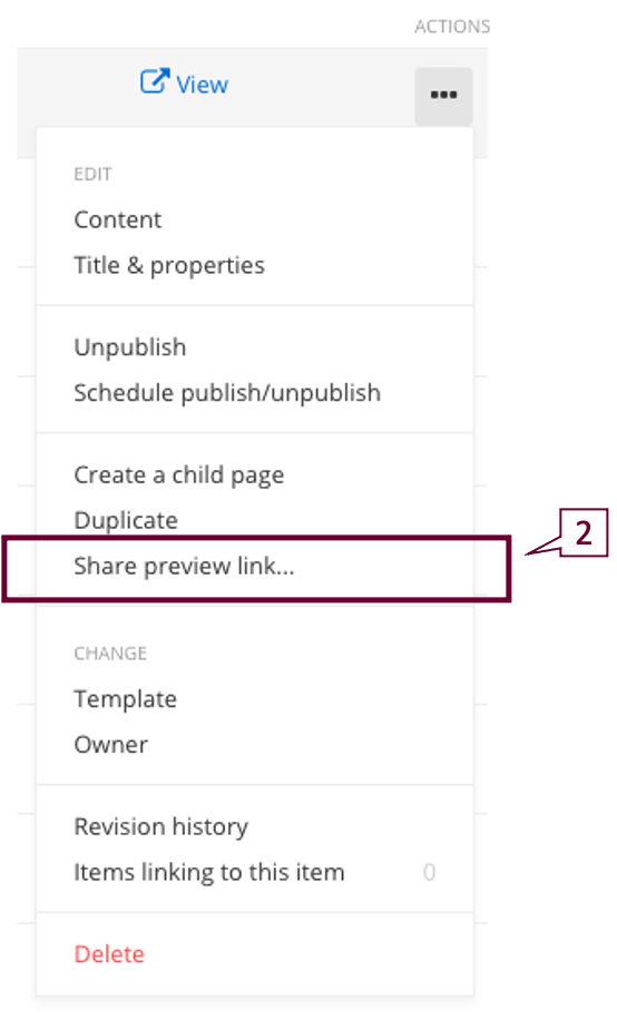 1. In the Pages menu, select the page you want to share preview, click the ACTIONS ellipses.