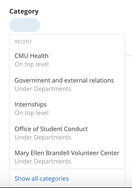 Categories are the area, department or college responsible for the content. You can have more than one category for content submission, but it must be strictly related to keep search results narrowly focused.