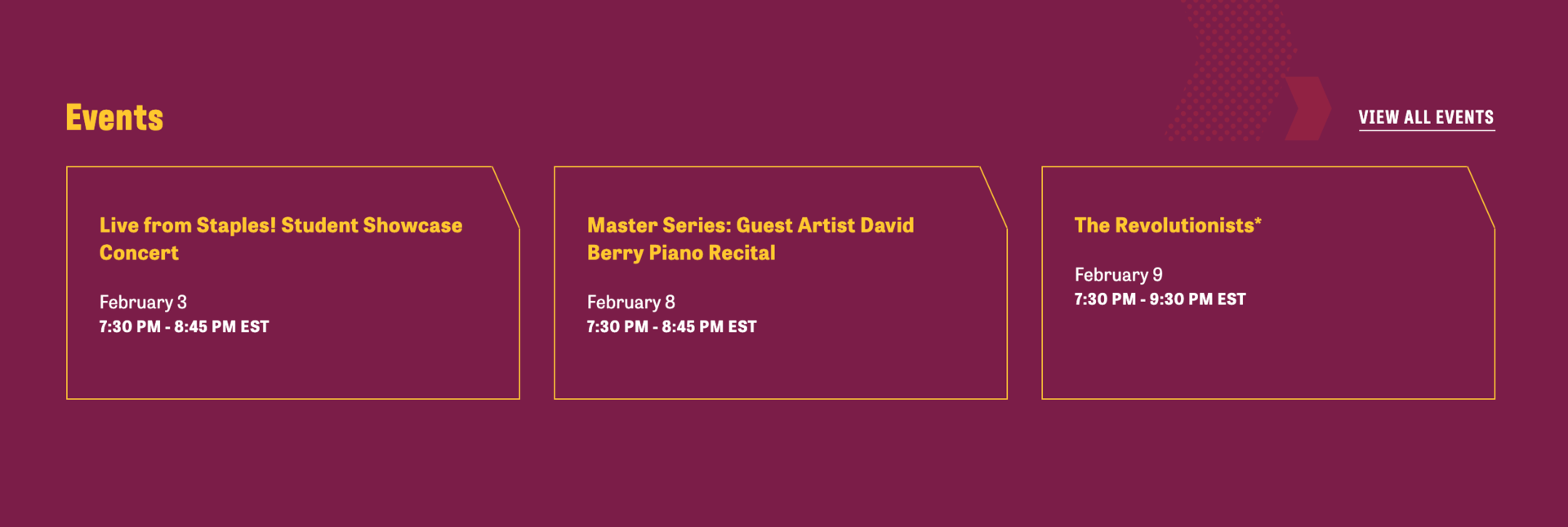 - Display a maximum of 3 events and utilize "View All Events" to direct users to more.