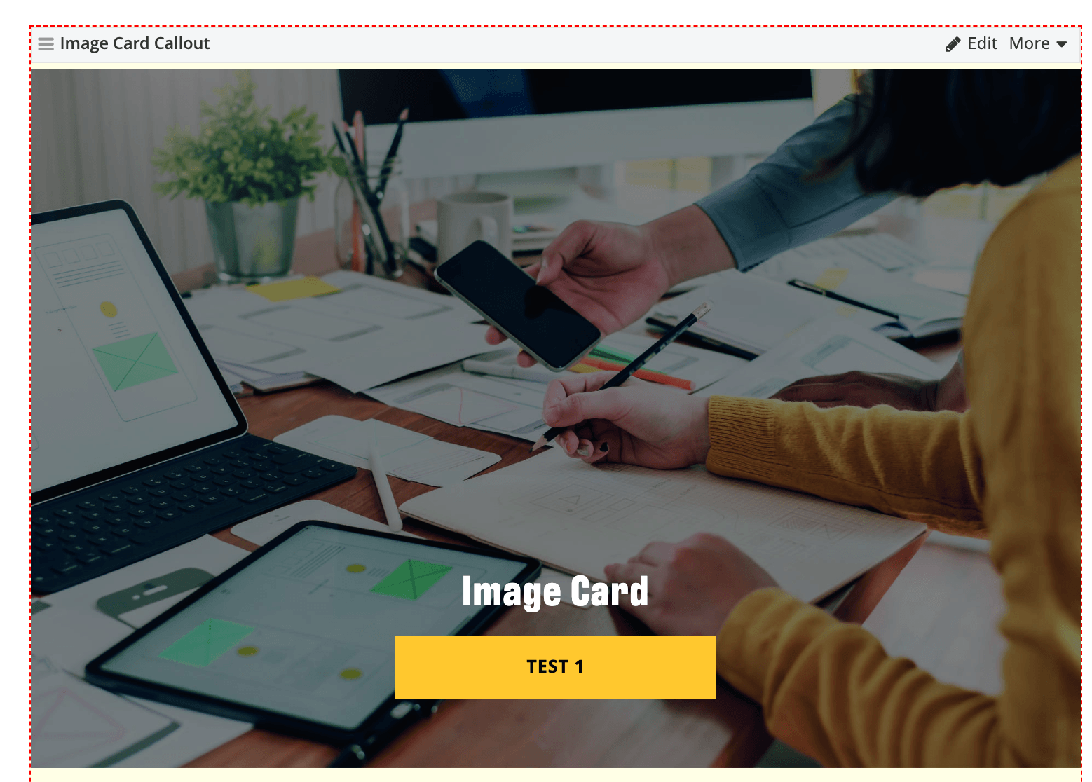 - Use the Image Card Callout widget in place of text paired with a button or hyperlink. Carefully consider which will be the best user experience for your audience.