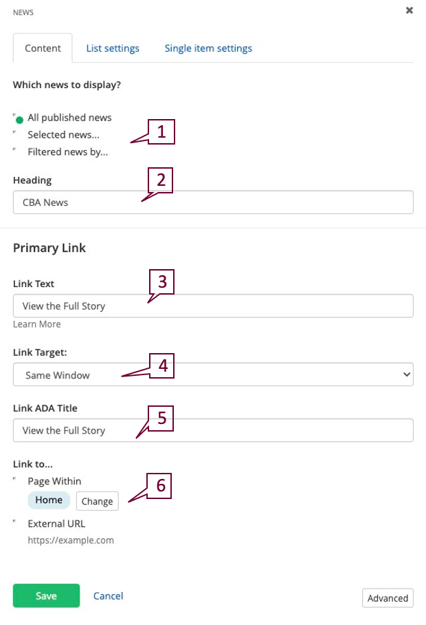 In the next modal screen, select the news you wish to display.