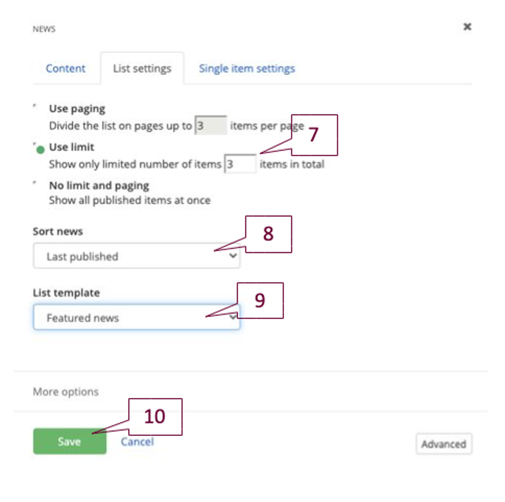 8. Sort news: Last Published.