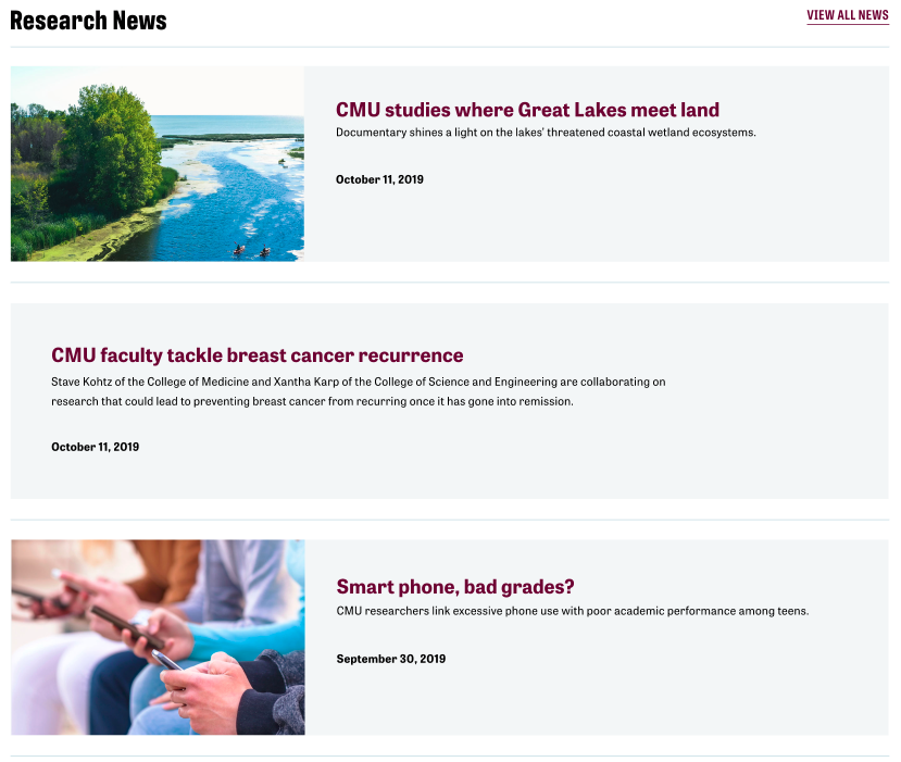 A. All News: Shows all CMU news.
