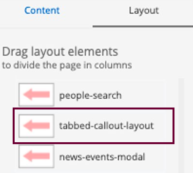 - Note: Be sure the container you are adding the tabbed-callout-layout is full-width, meaning it spans the entire width of the page.