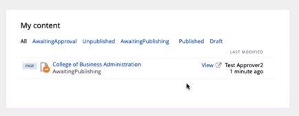If the approver accepts the page, it is sent to the strategists. The status will be updated to 'Awaiting Publishing'. Once they publish it, it will be reflected under 'My content' on the Dashboard and the process is complete.
