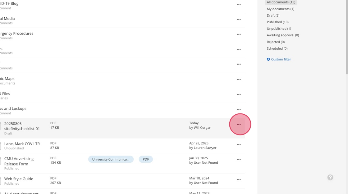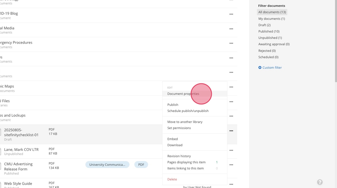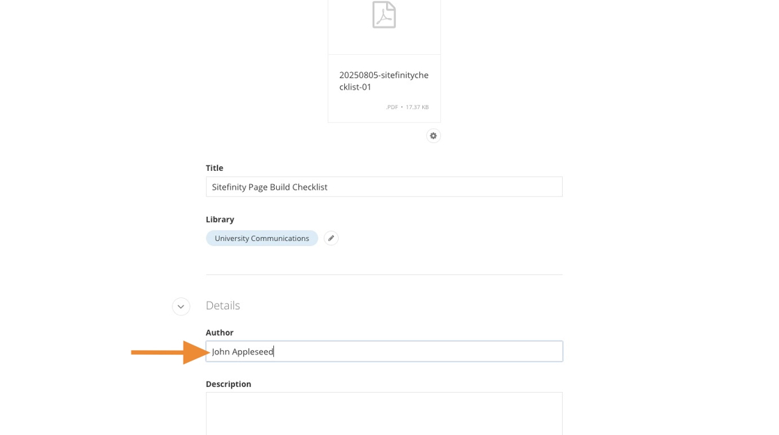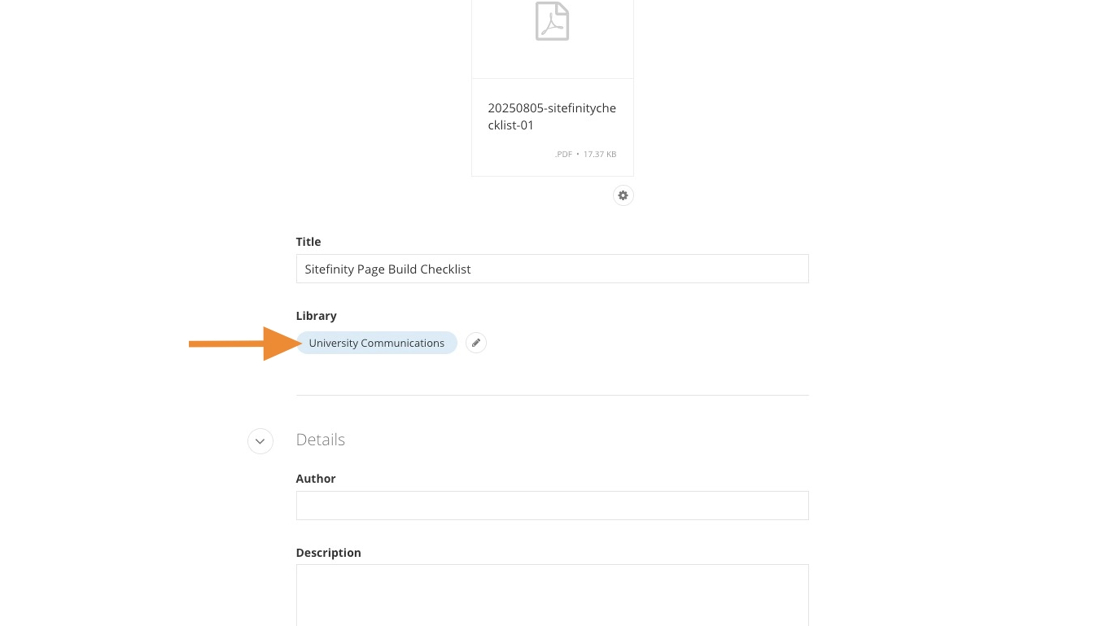 5. Ensure the PDF is uploaded under the proper Document Library within the DAM.