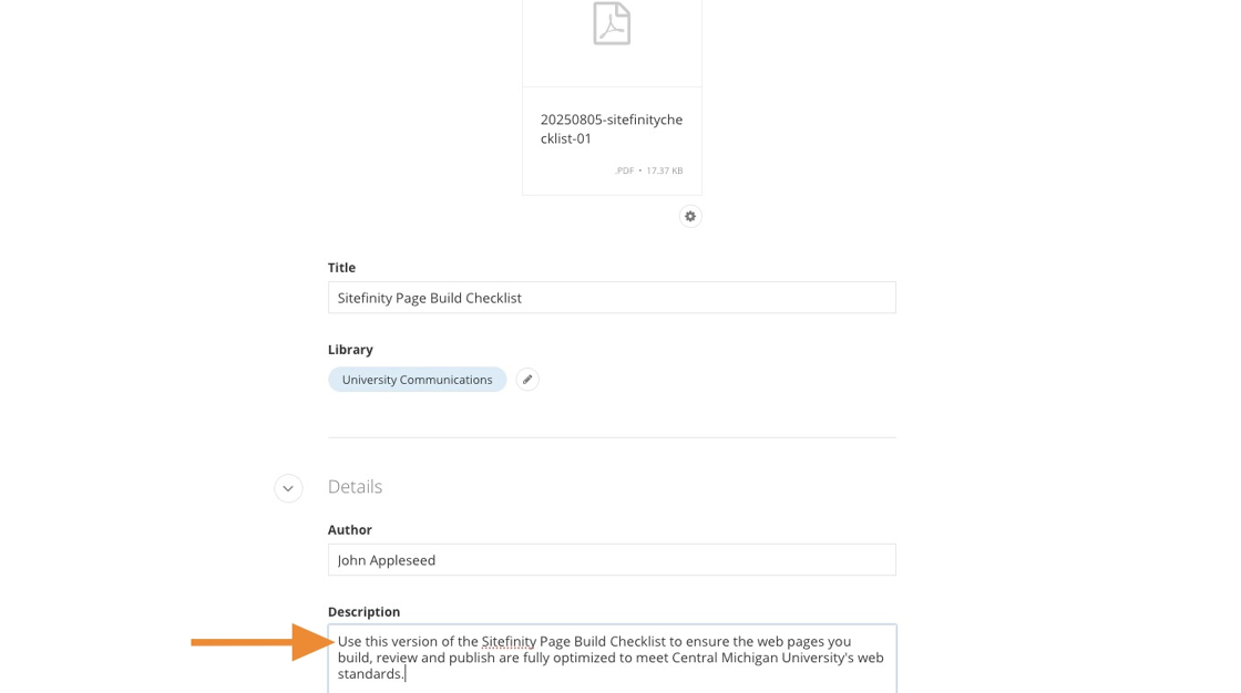 This field should add helpful context about the document’s content. Use plain language and relevant keywords to make the file easier to find and understand.