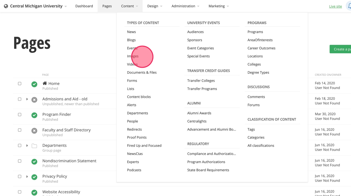 4. Find the folder for your area or unit. Here, we're using University Communications.