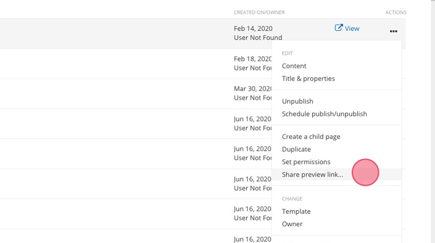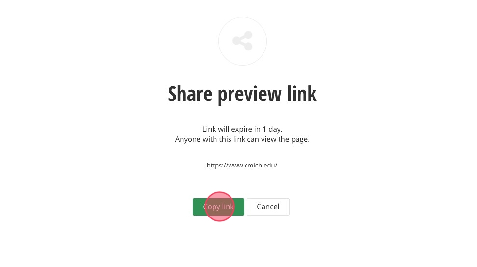 - When you share the link, communicate that the link will expire after one day and that the page has not gone through all approval steps yet.