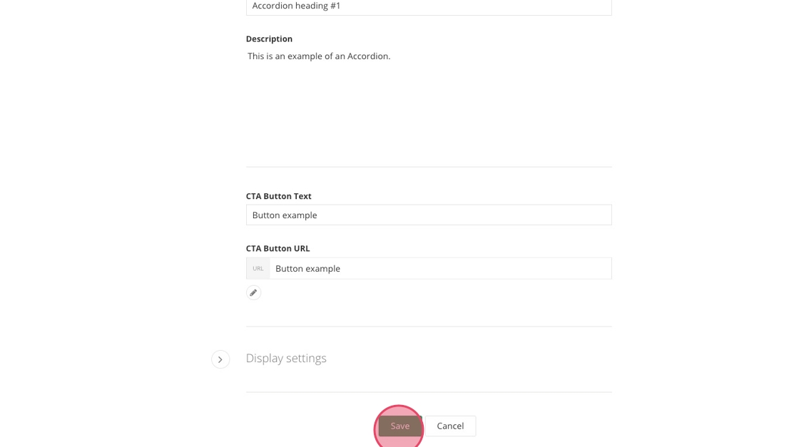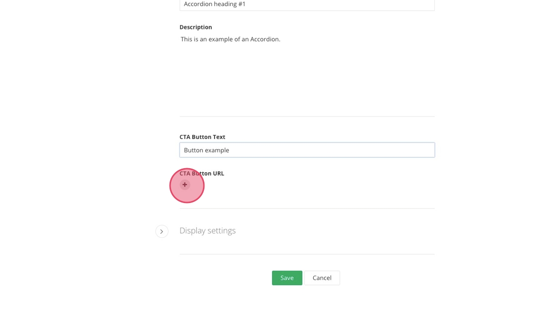 Tip: The following steps are optional if you choose to add a button link to your Accordion tab.