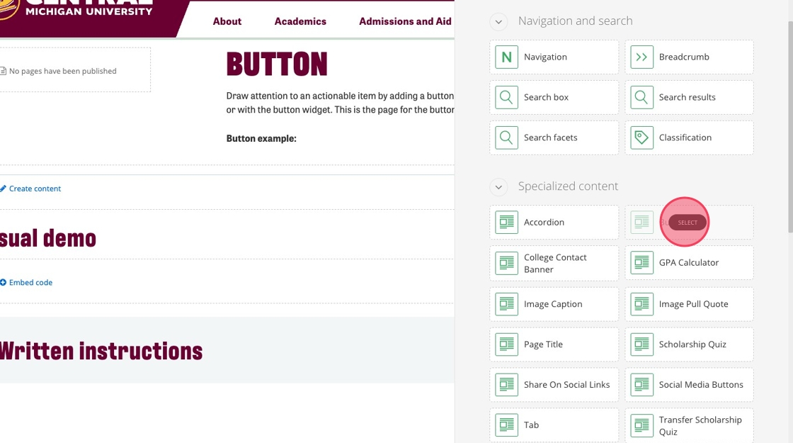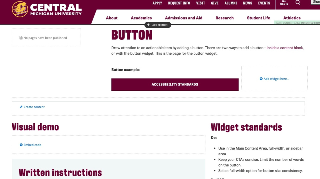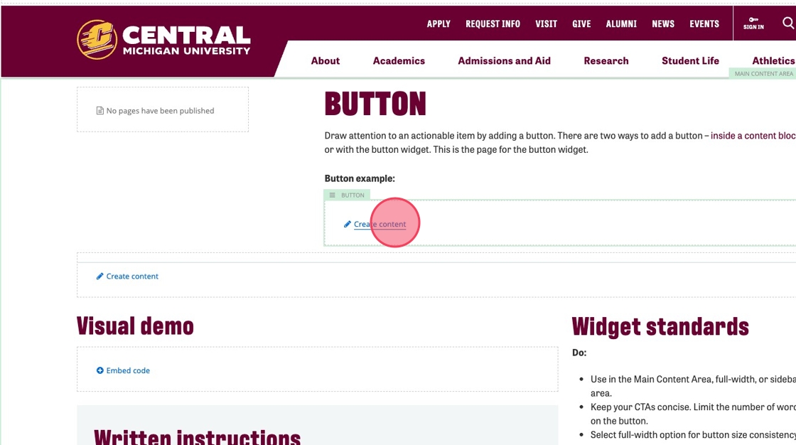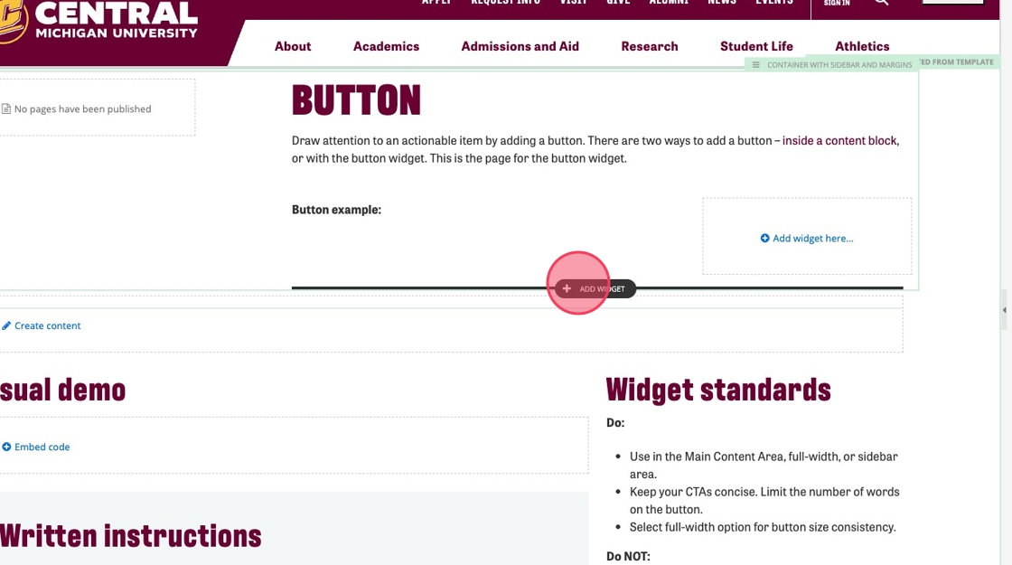Draw attention to an actionable item by adding a button. There are two ways to add a button – inside a content block, or with the button widget. This is the page for the button widget.