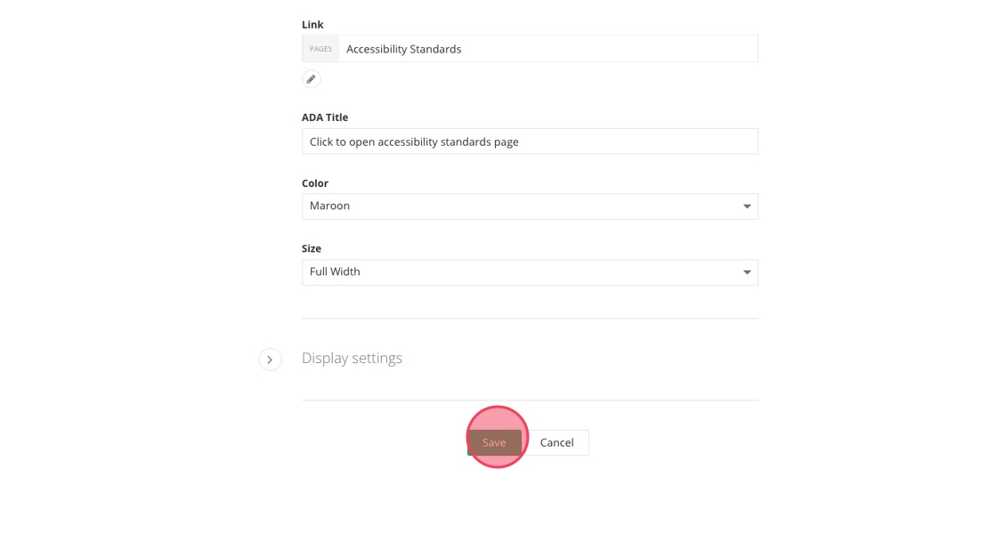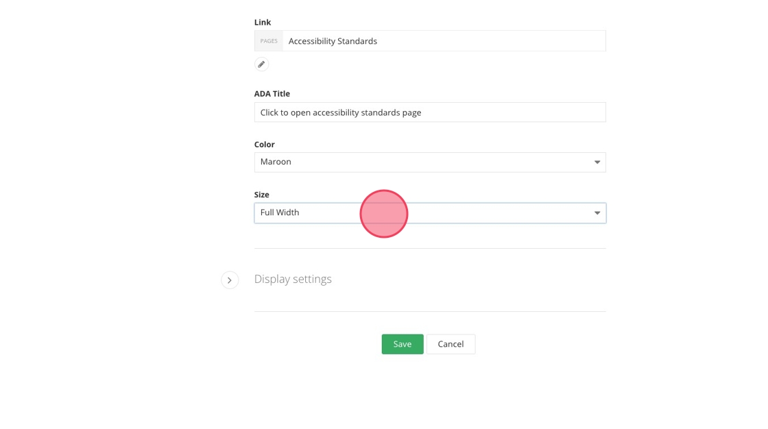 12. Choose a width for your button: Small, Standard, or Full Width. If your button widget is in the sidebar, always select Full Width.