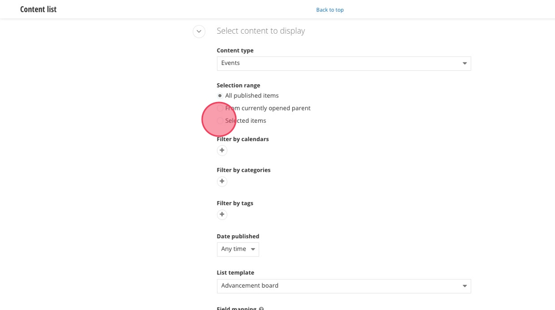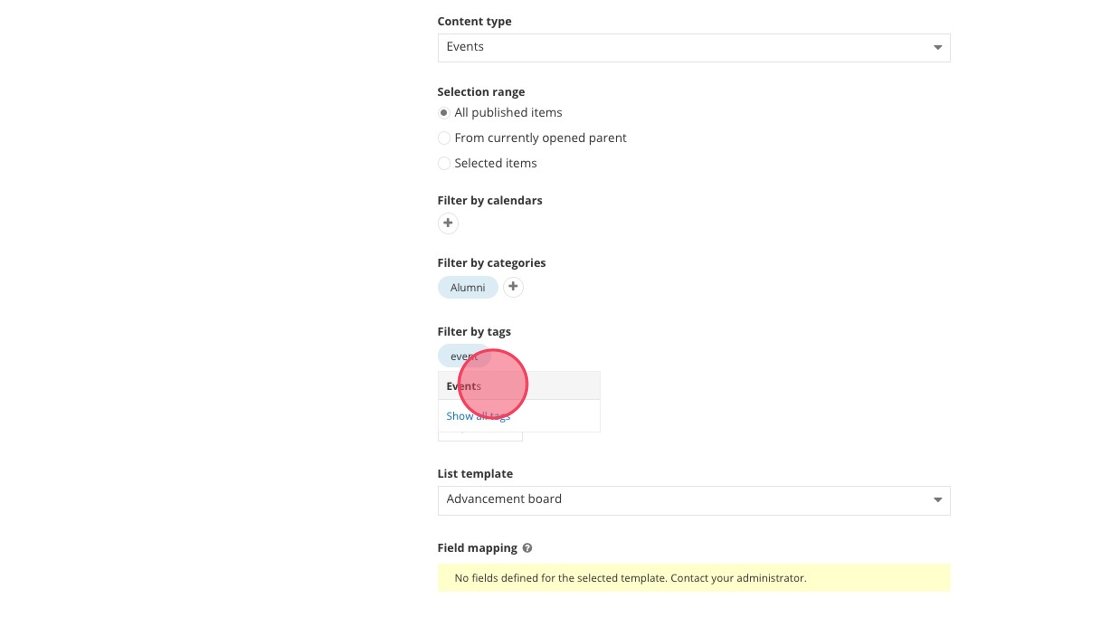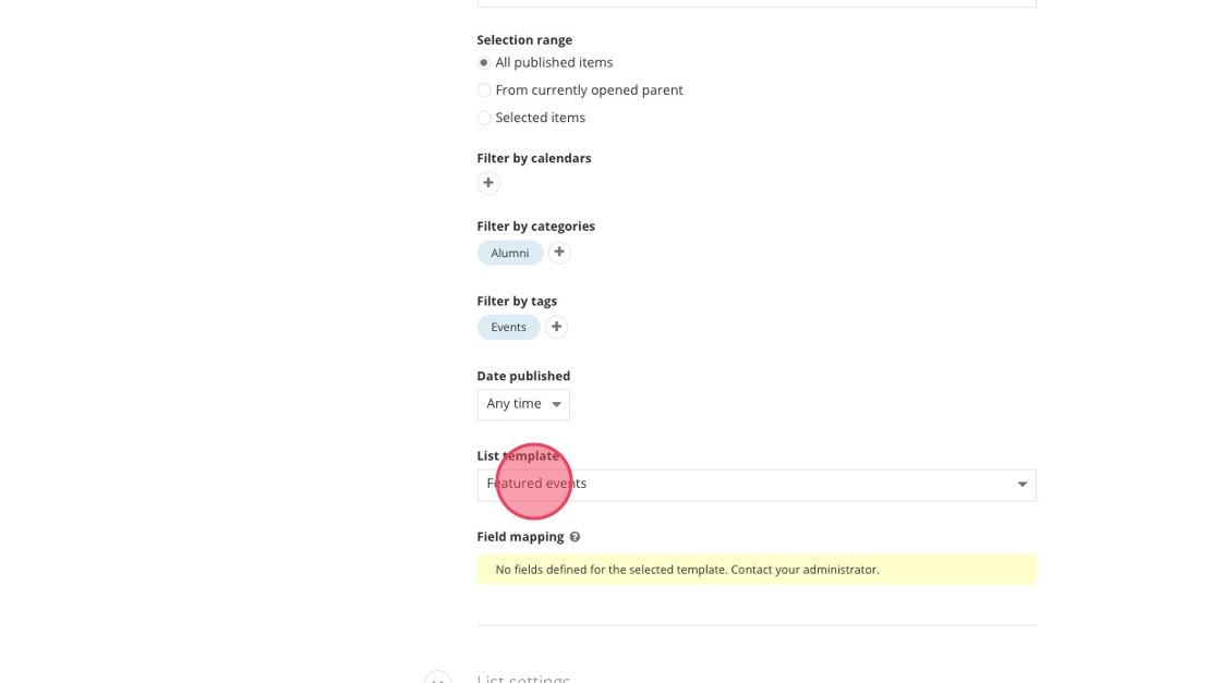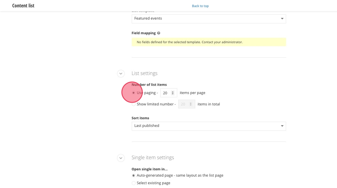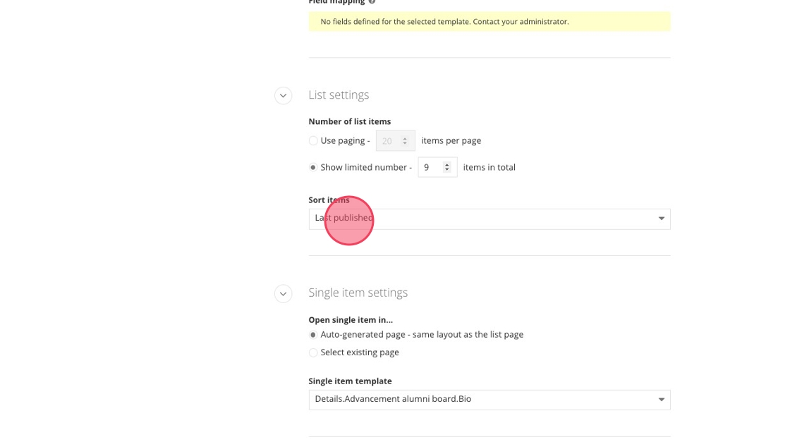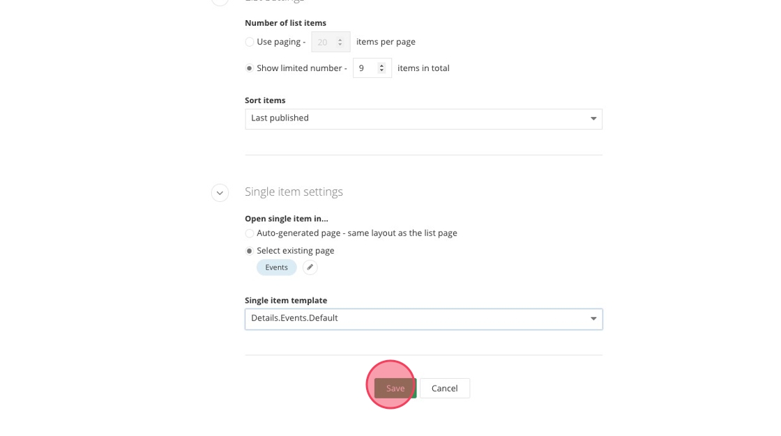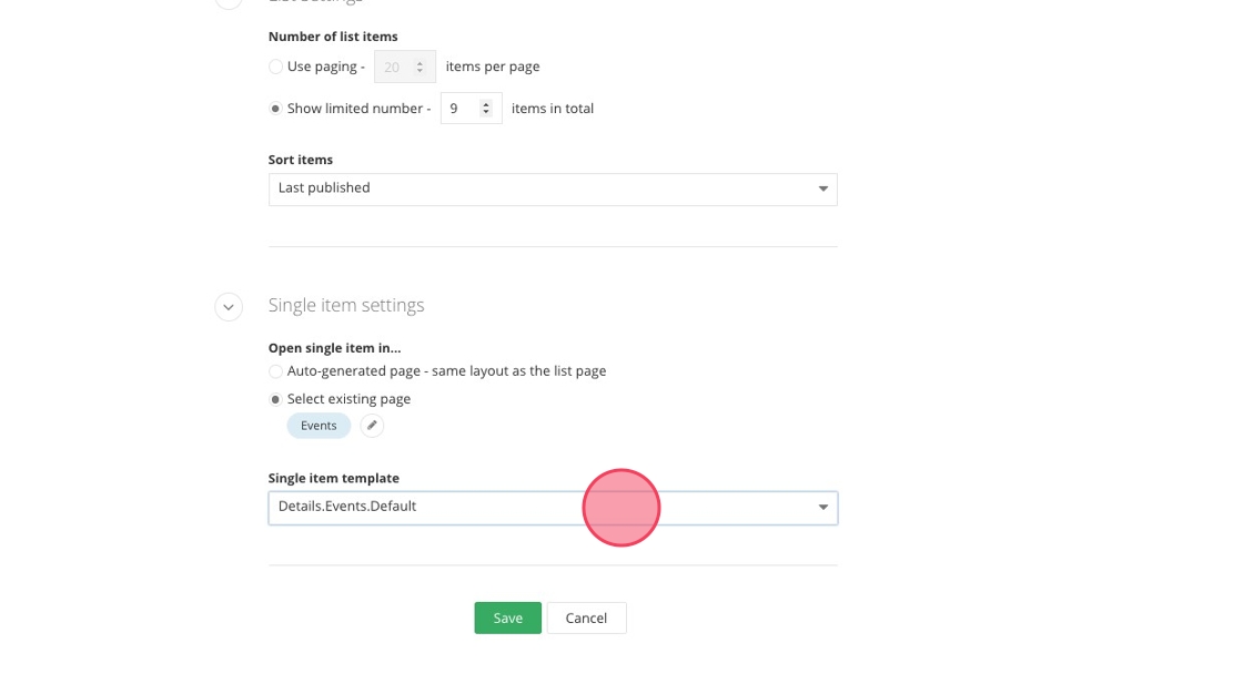 13. Under "Single item template," select the "Details.Events.Default" option.
