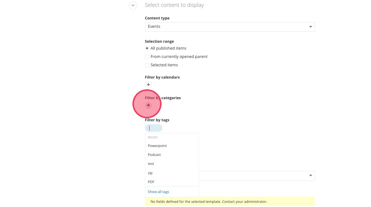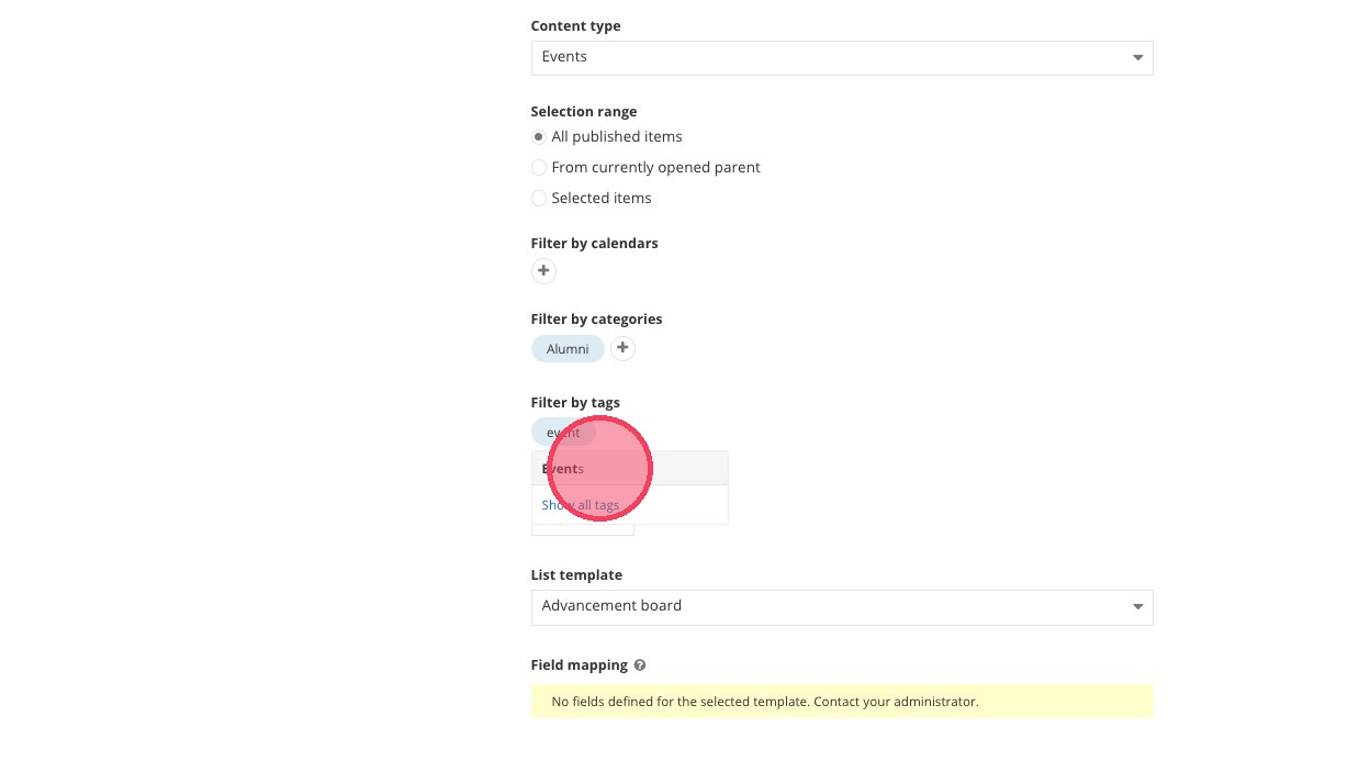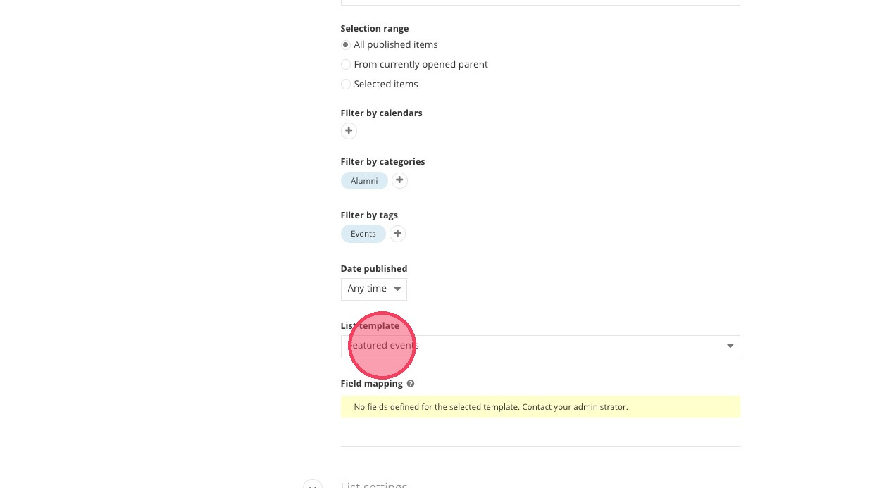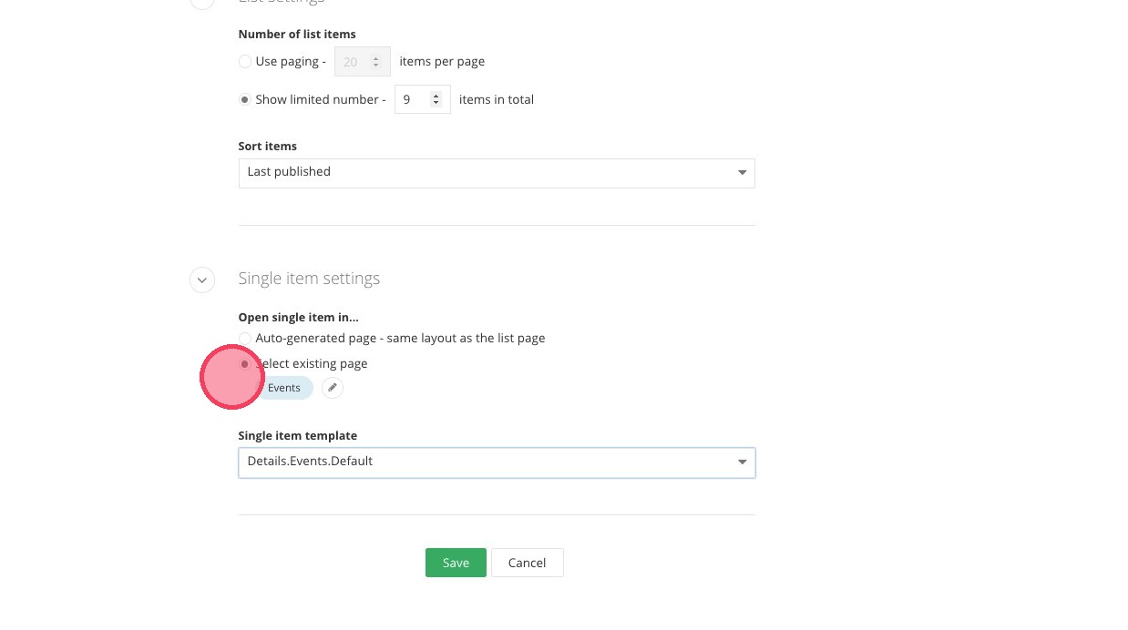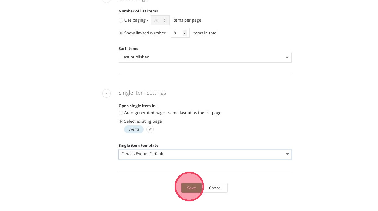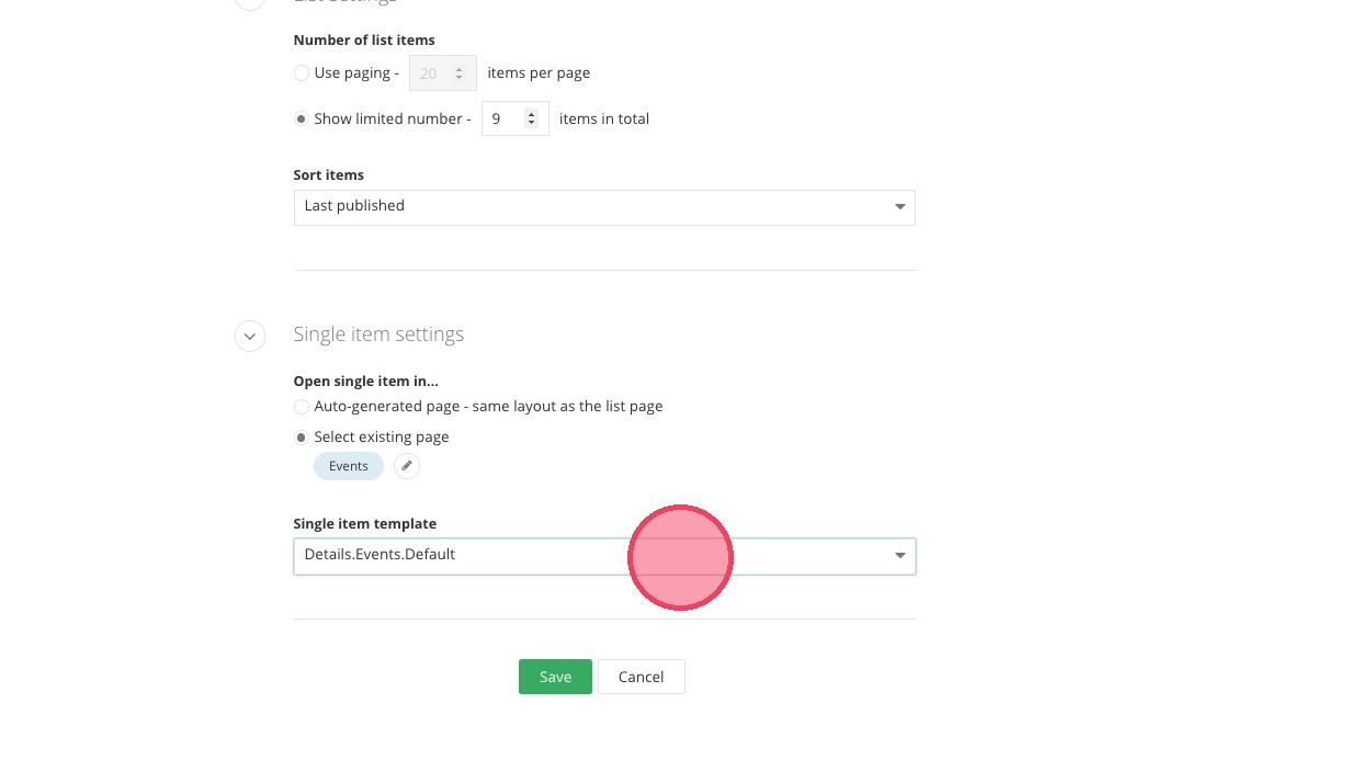 14. Under "Single item template," select the "Details.Events.Default" option.