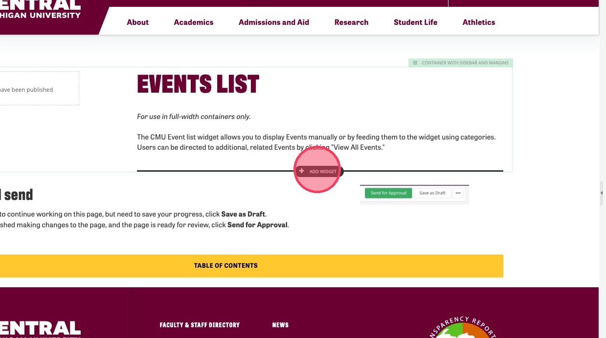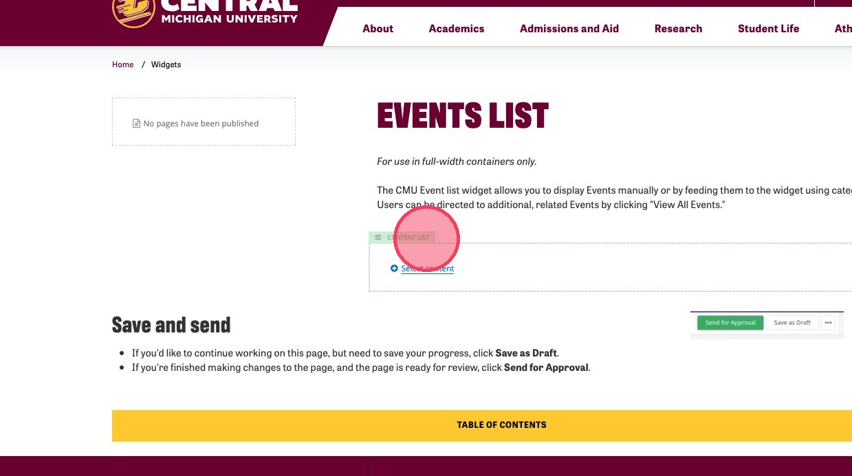 - Allow a CMU Event widget on a published page to remain empty, displaying zero events.