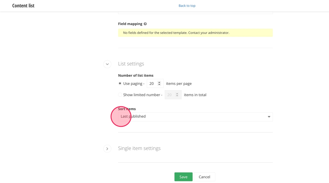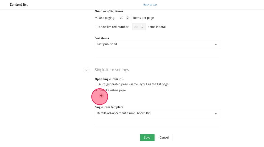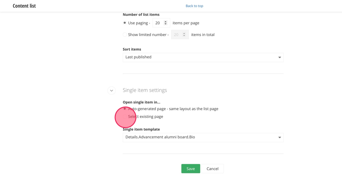 22. Under Single item settings, click the "Select existing page" field.