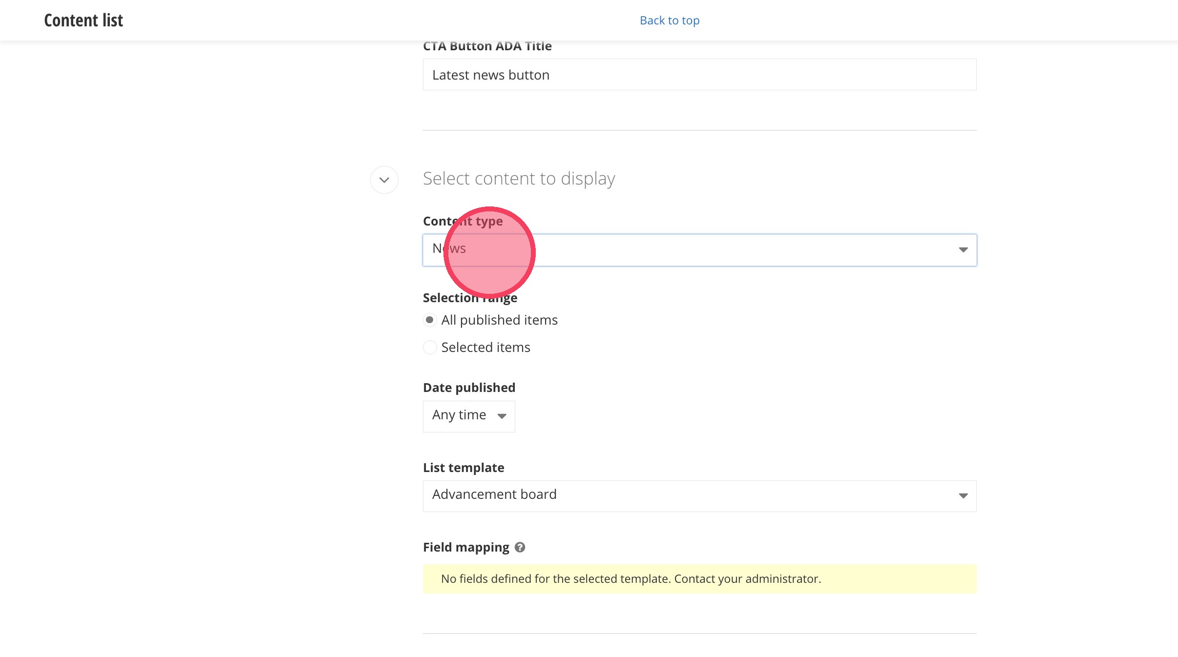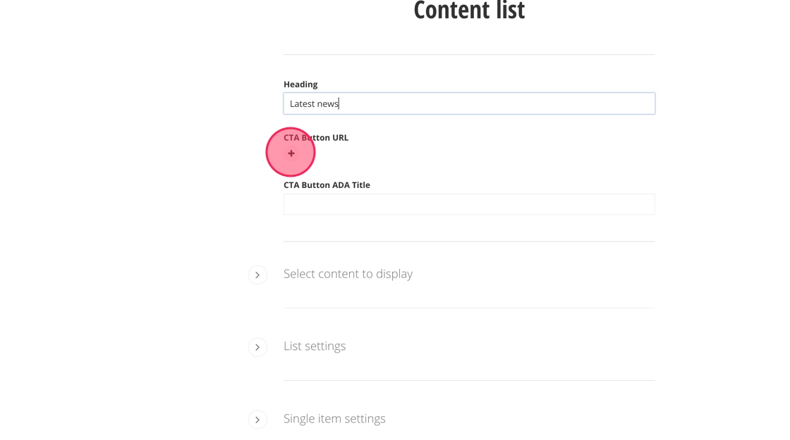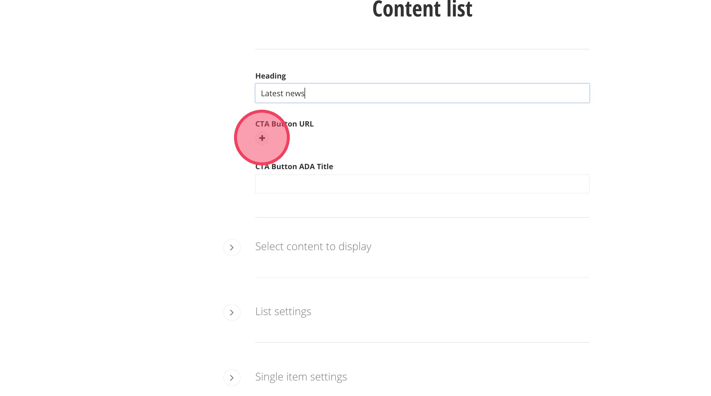 8. Click on the + under CTA Button URL to add a link to all latest news.