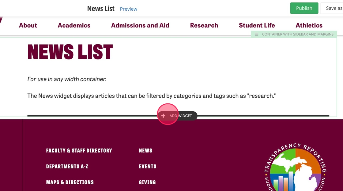 Tip: Most news widgets are set to show 3-5 stories and are ordered by latest published.