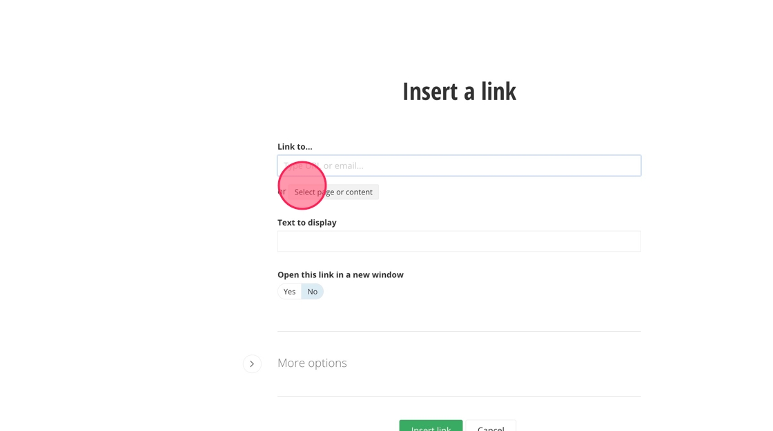 9. Under the Link to field, click on "Select page or content".