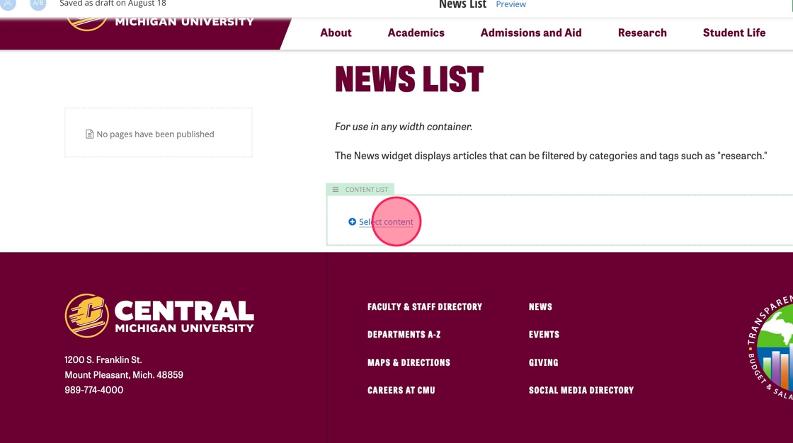 7. In the Content list widget, add the heading for your News widget.