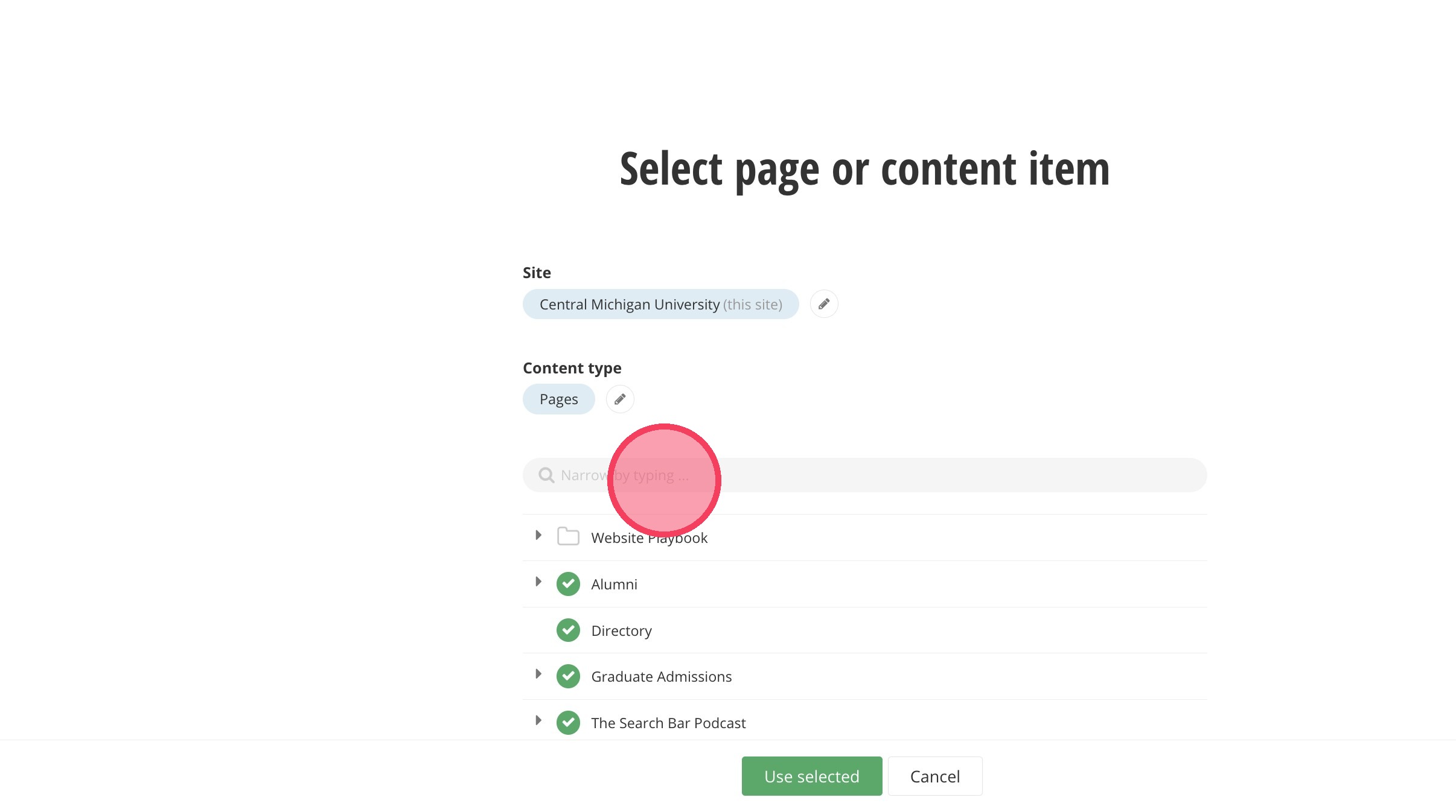 10. In the "Narrow by typing ..." field, type in "Latest news" to find the latest news page.