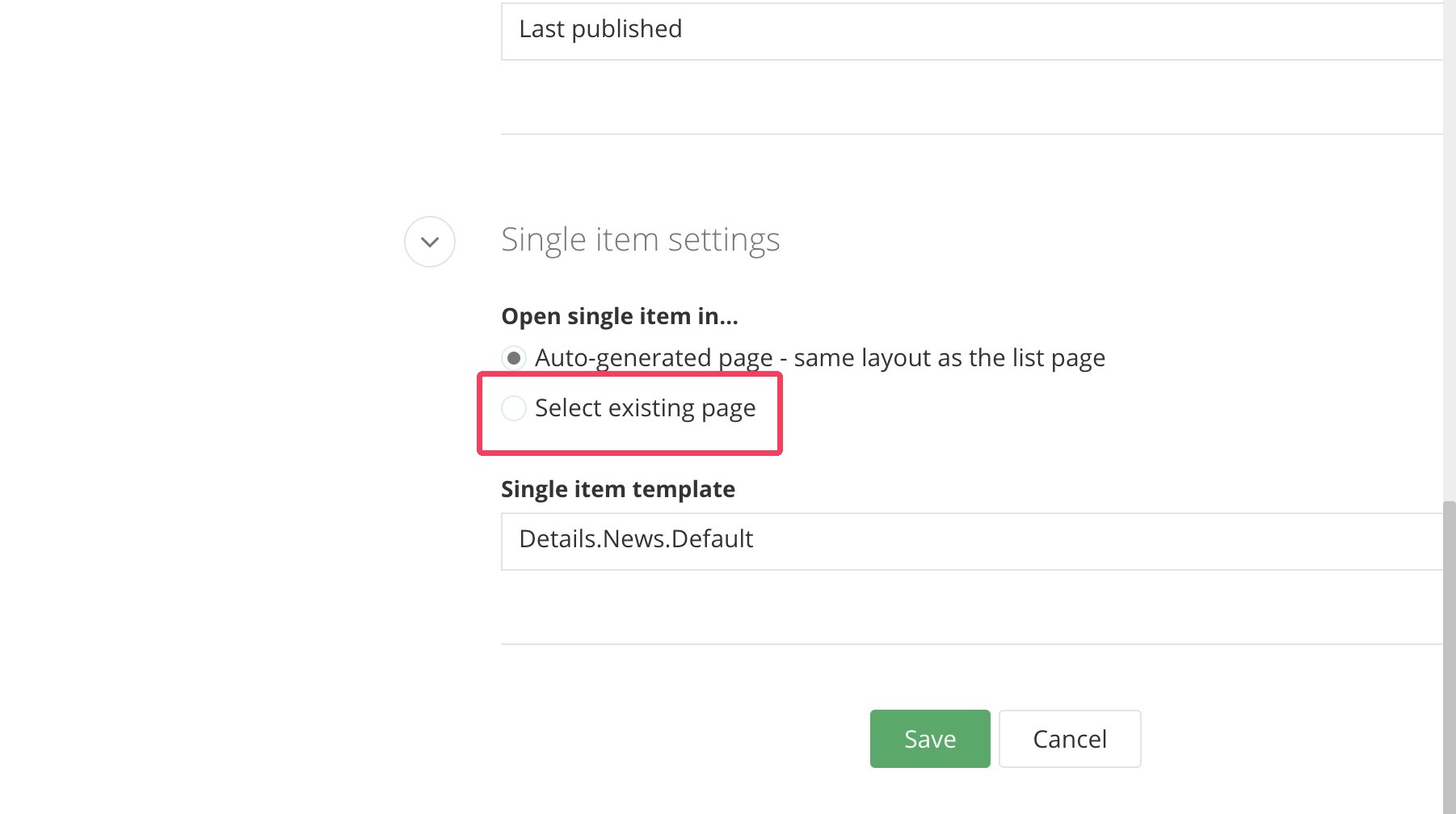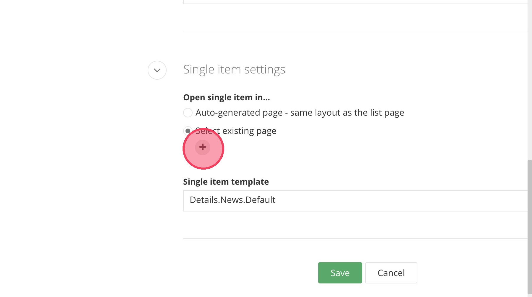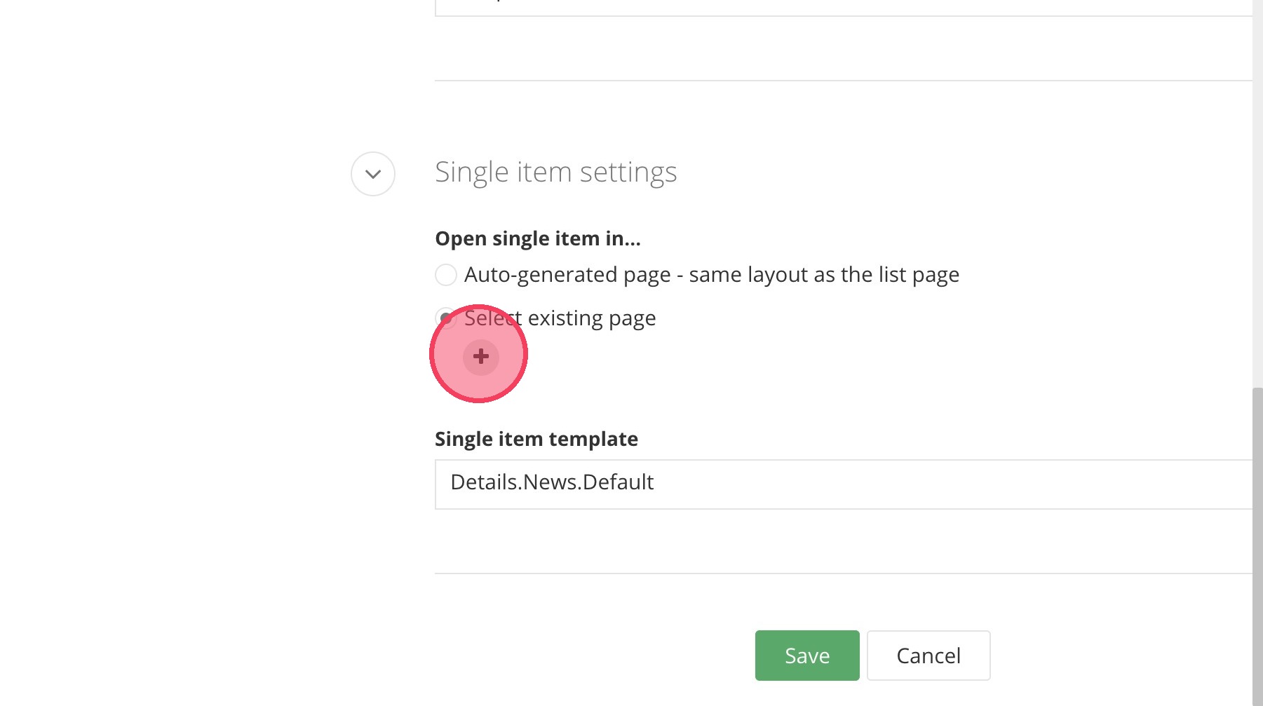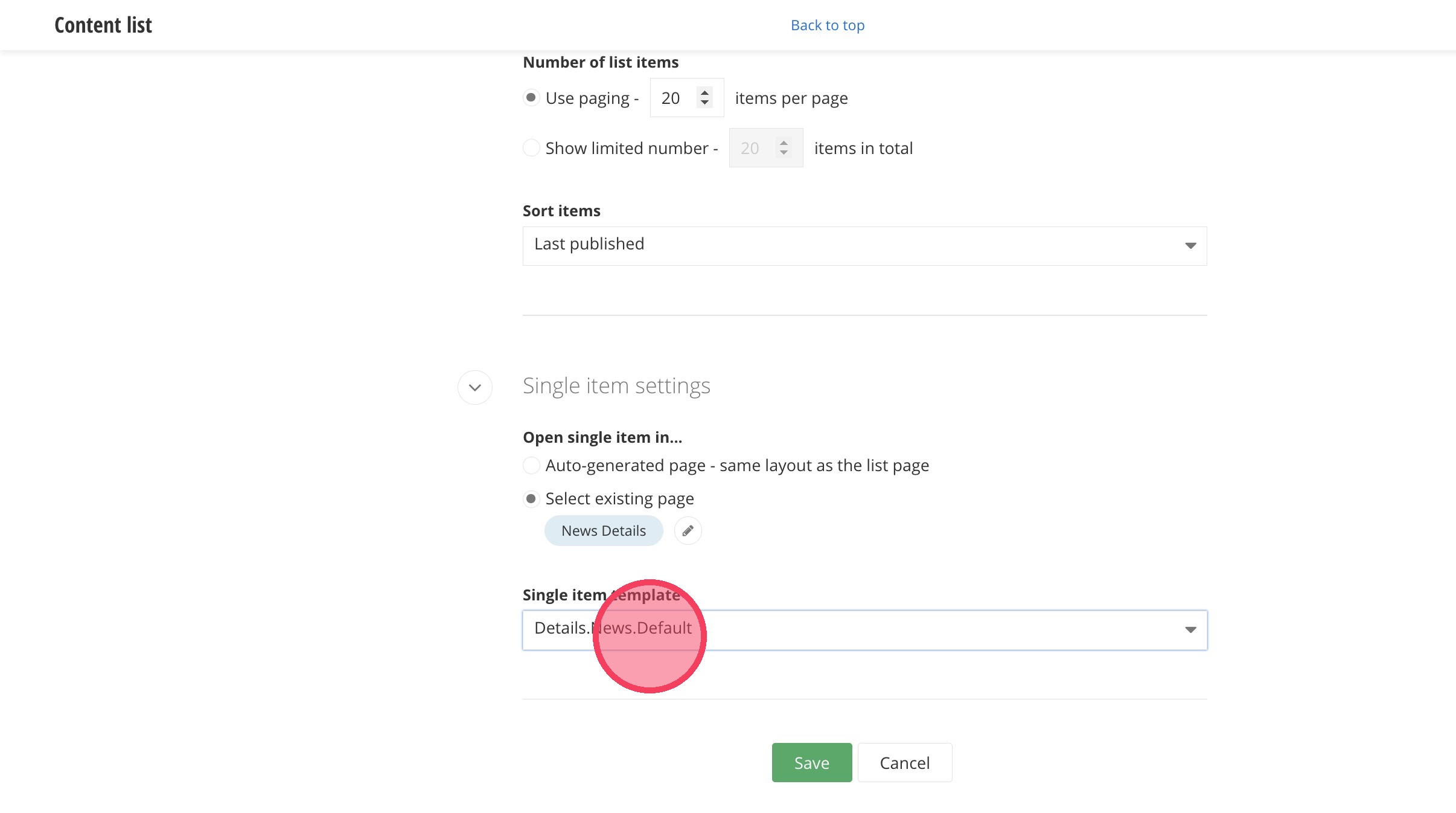 28. Select the "Details.News.Default" option from the dropdown menu under Single item template.