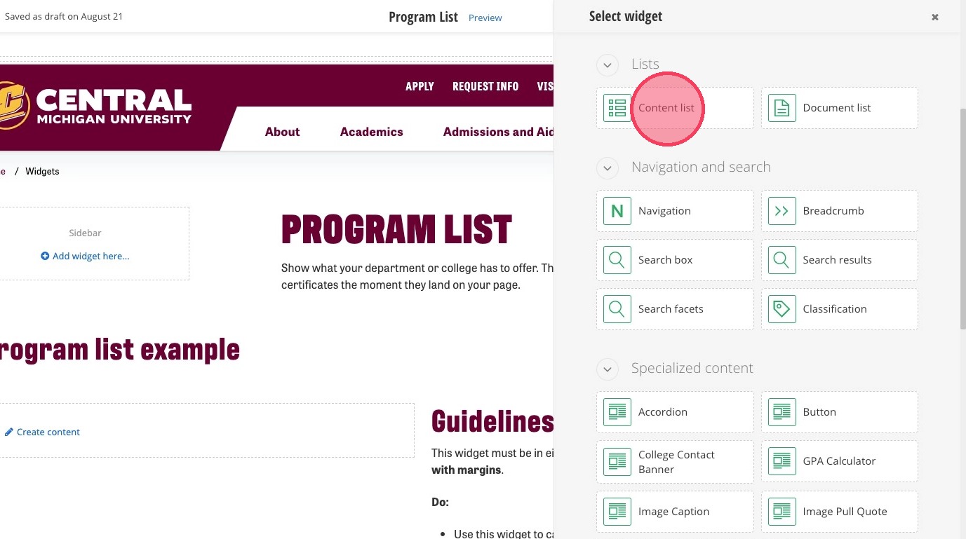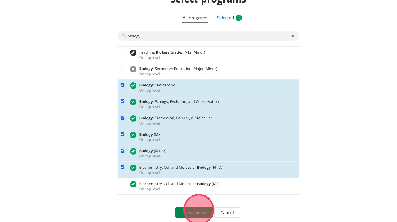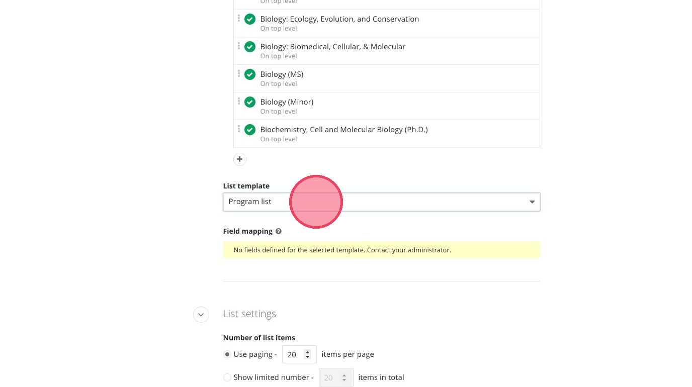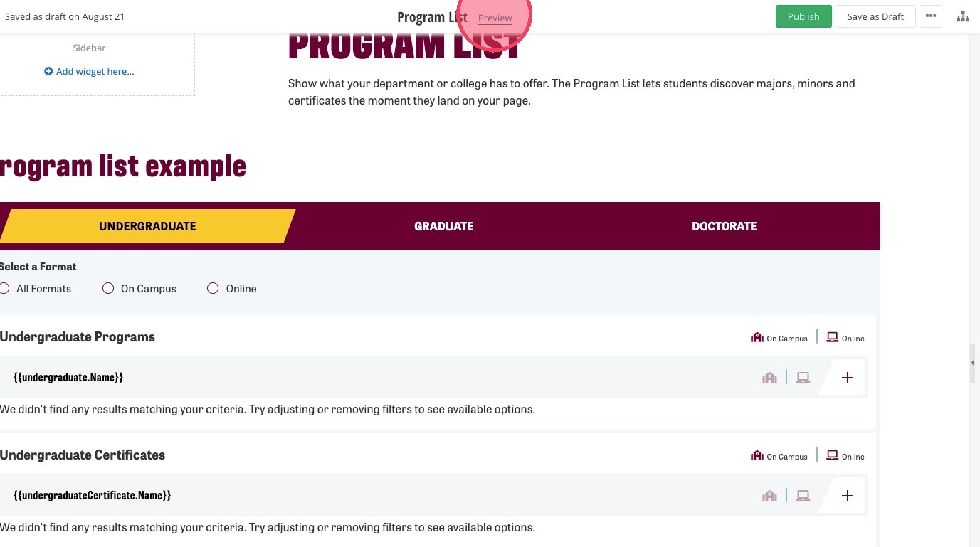Show what your department or college has to offer. The Program List lets students discover majors, minors and certificates the moment they land on your page.