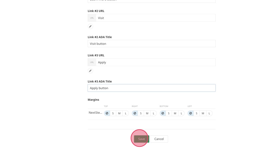 Tip: It is optional to add link #2 and #3. If you don't plan on adding more links, click Save at the bottom of the page.