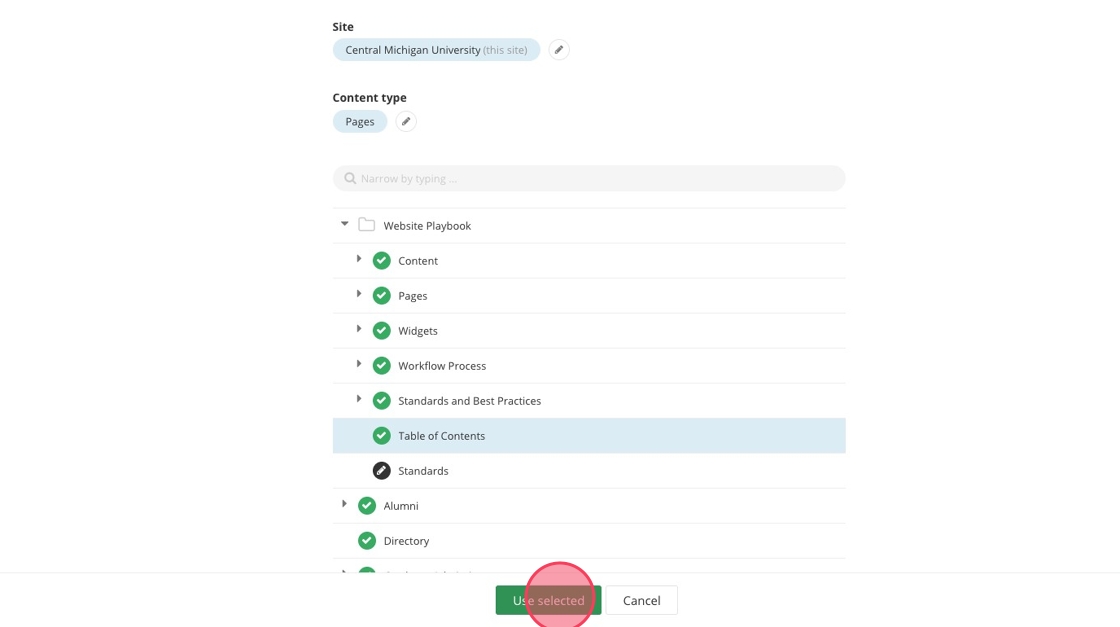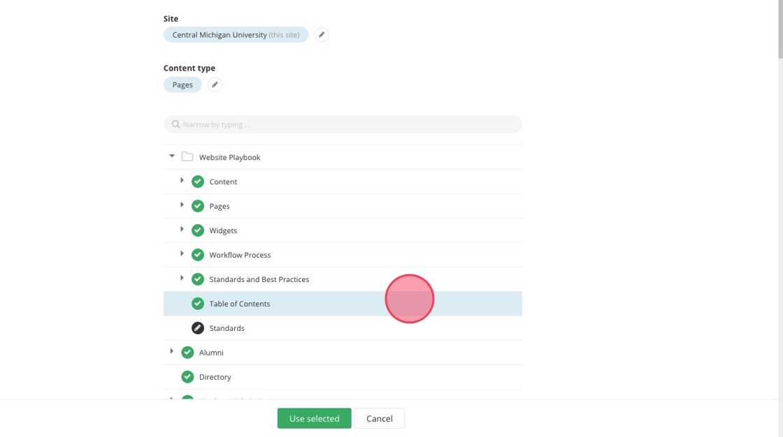 - Example: Open the table of contents for CMU's Sitefinity playbook.