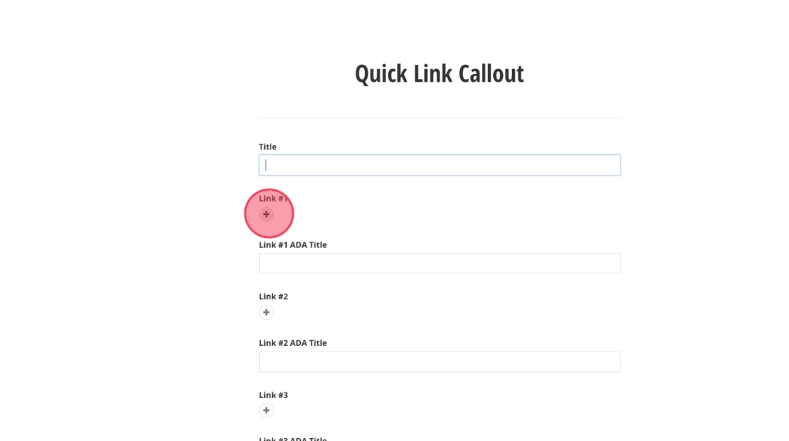 4. Fill out the Quick Links Callout properties. A title is optional.