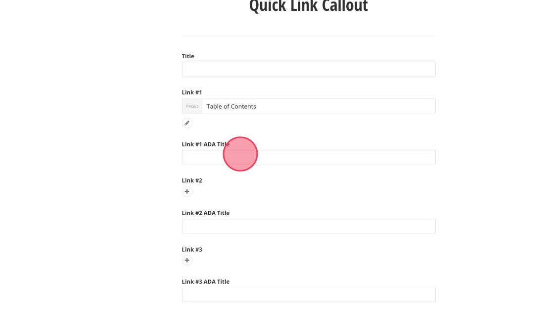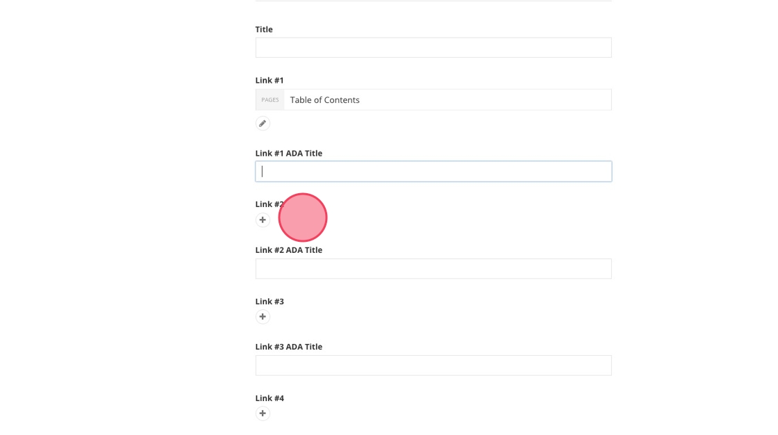 11. Click the "Link #1 ADA Title" field, and fill out the ADA property. Use this field to describe what happens when you click on the link.