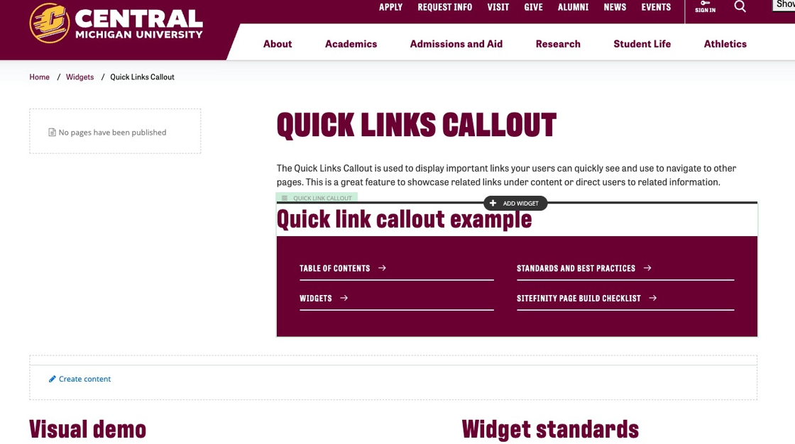 The Quick Links Callout is used to display important links your users can quickly see and use to navigate to other pages. This is a great feature to showcase related links under content or direct users to related information.