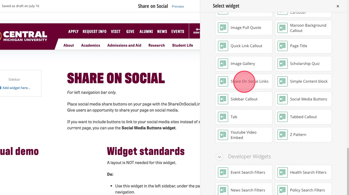 - If you'd like to continue working on this page, but need to save your progress, click Save as Draft.