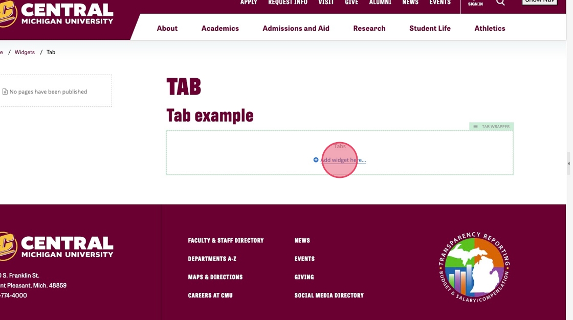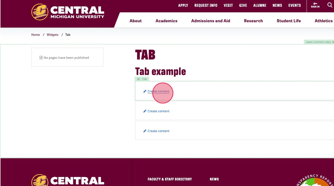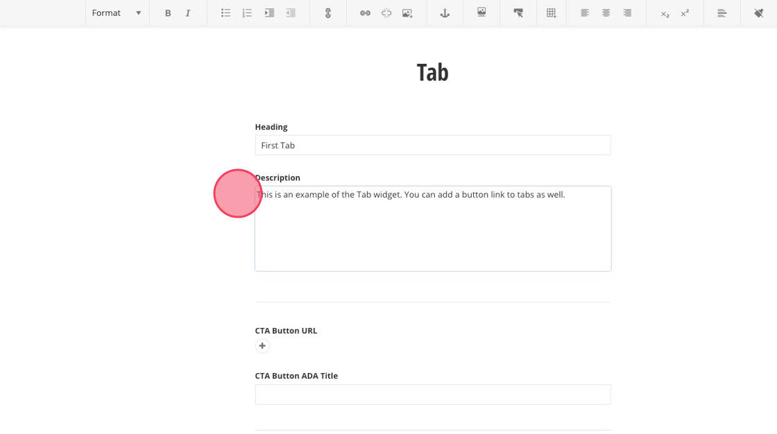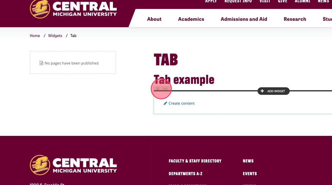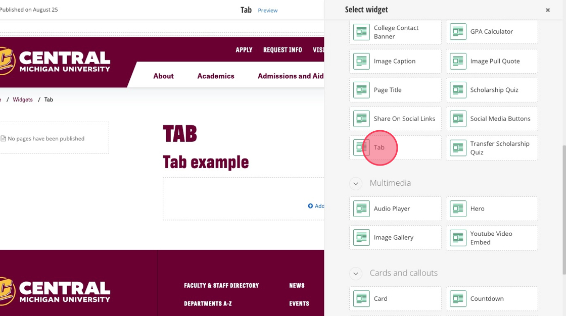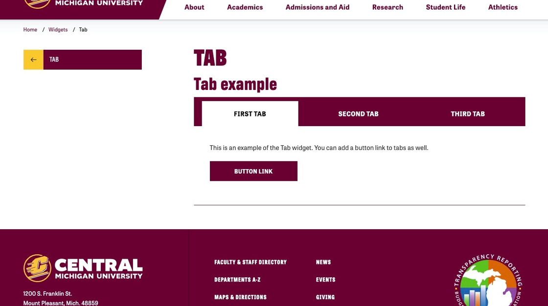 The Tab widget can be used to organize and display a list of short-form content. This widget is good for categories or any time users need information on a few key topics.