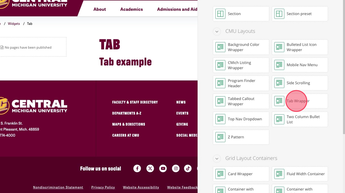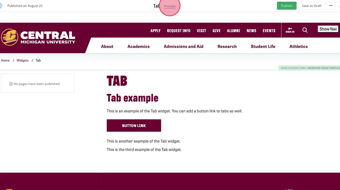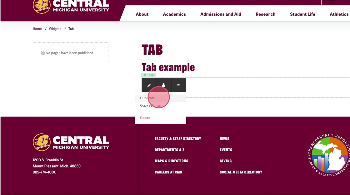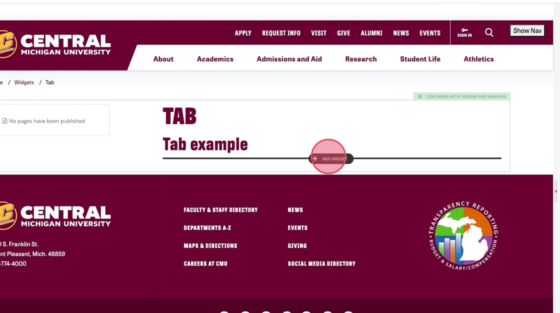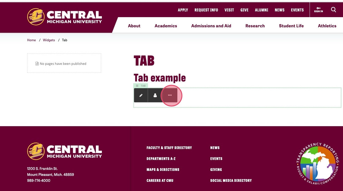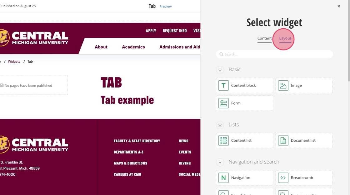 The Tab widget can be used to organize and display a list of short-form content. This widget is good for categories or any time users need information on a few key topics.