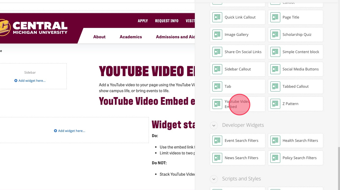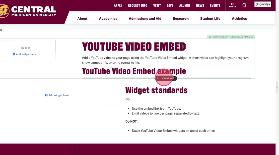 Add a YouTube video to your page using the YouTube Video Embed widget. A short video can highlight your program, show campus life or bring events to life.