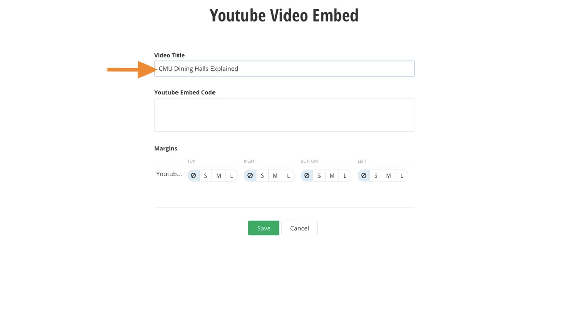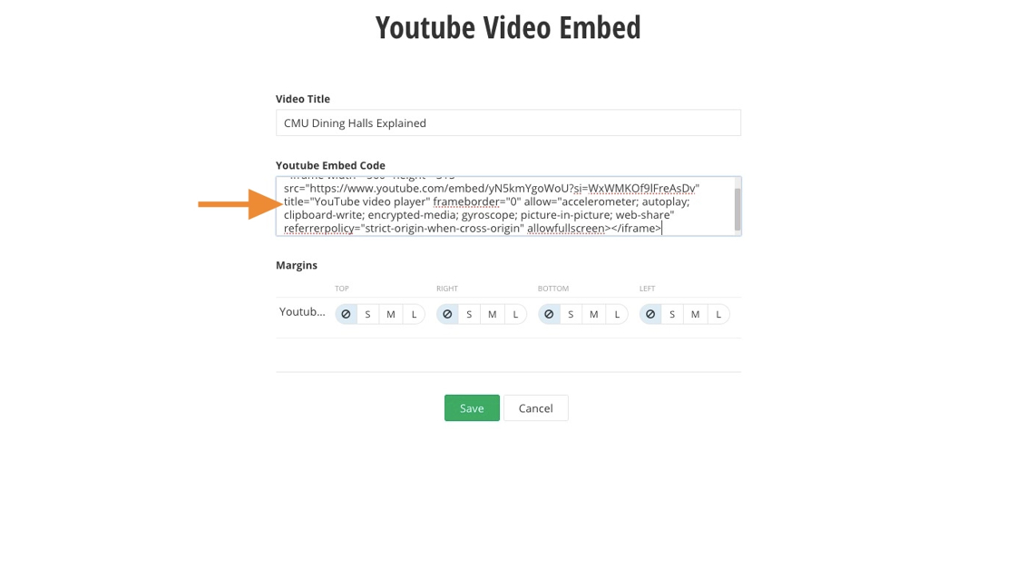 8. Paste the YouTube video embed code into the "YouTube Embed Code" field.