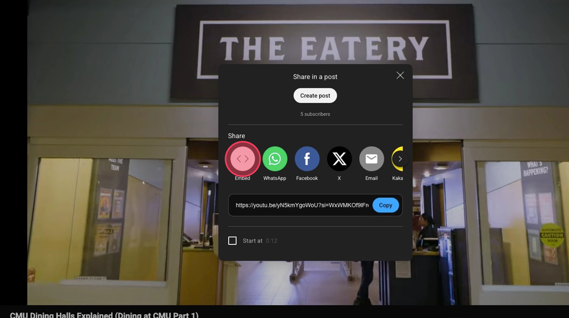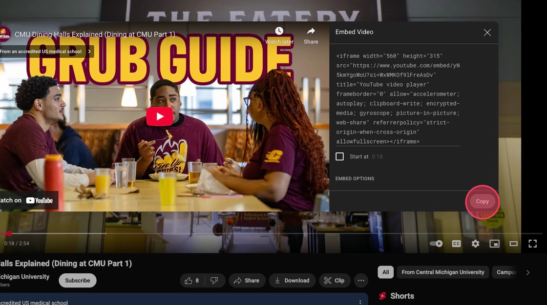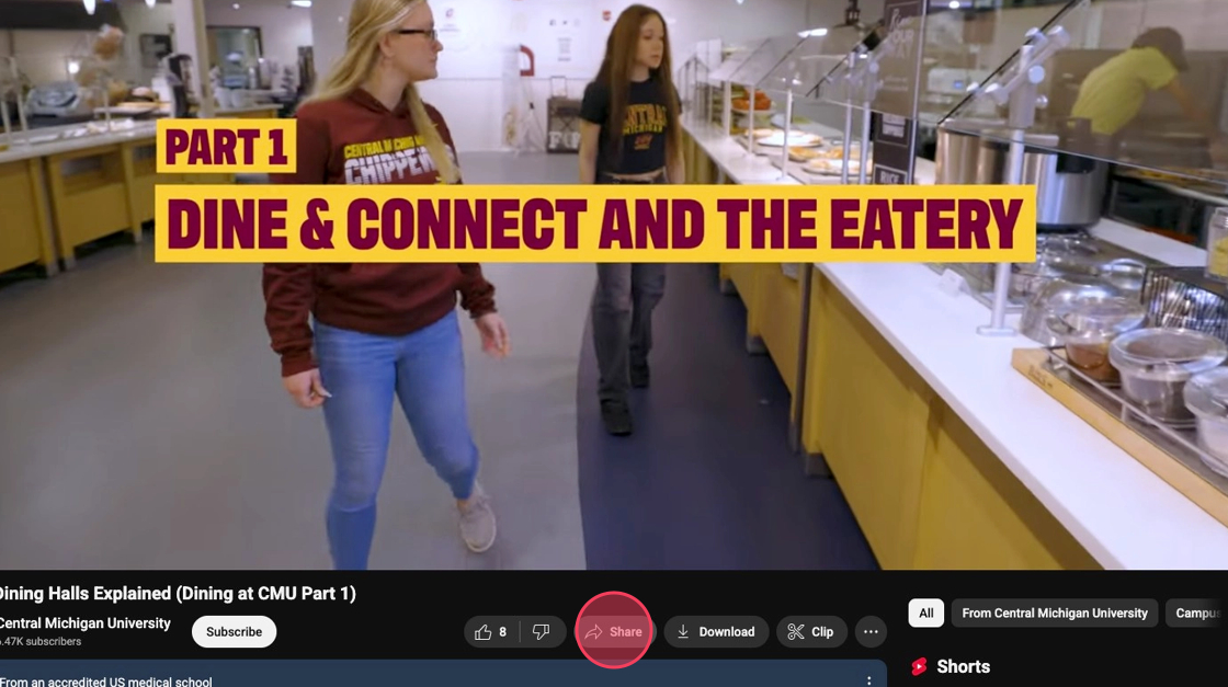 4. Click Share on the YouTube video you plan on embedding.