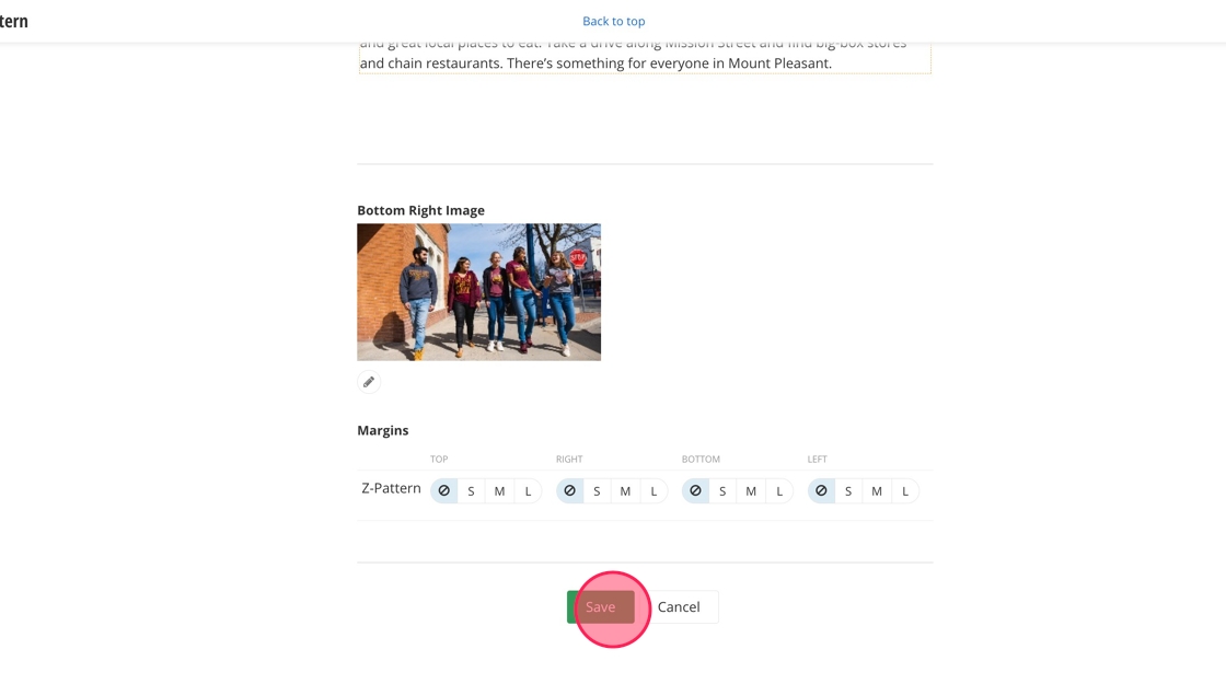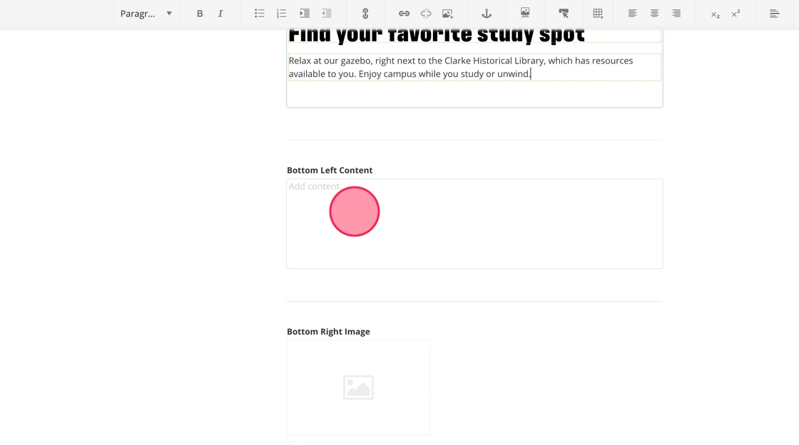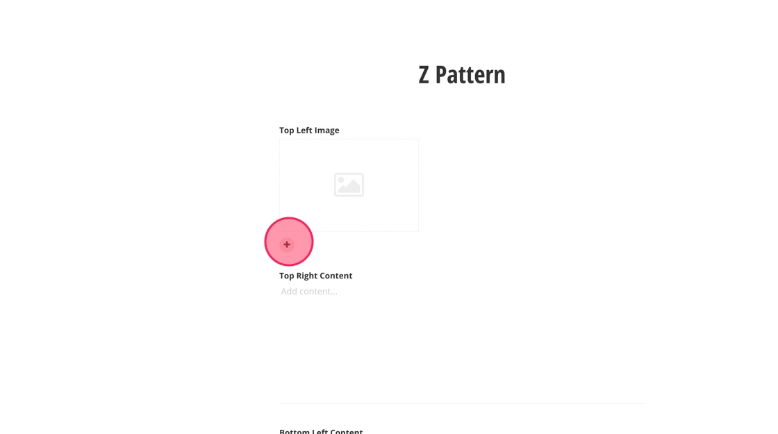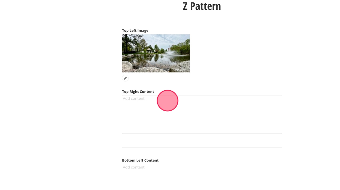 9. Add your text to the Z Pattern by clicking on the content field under Top Right Content.