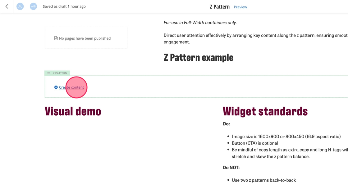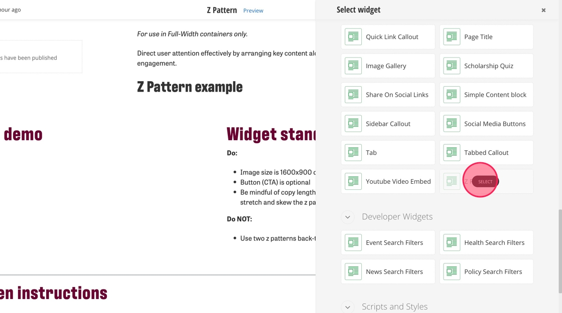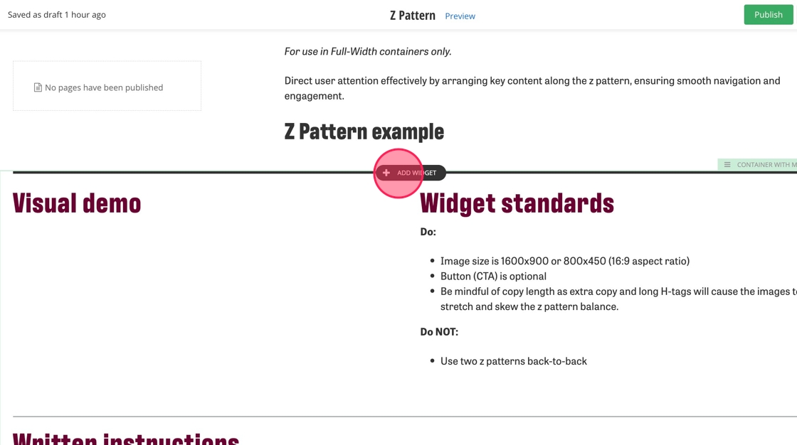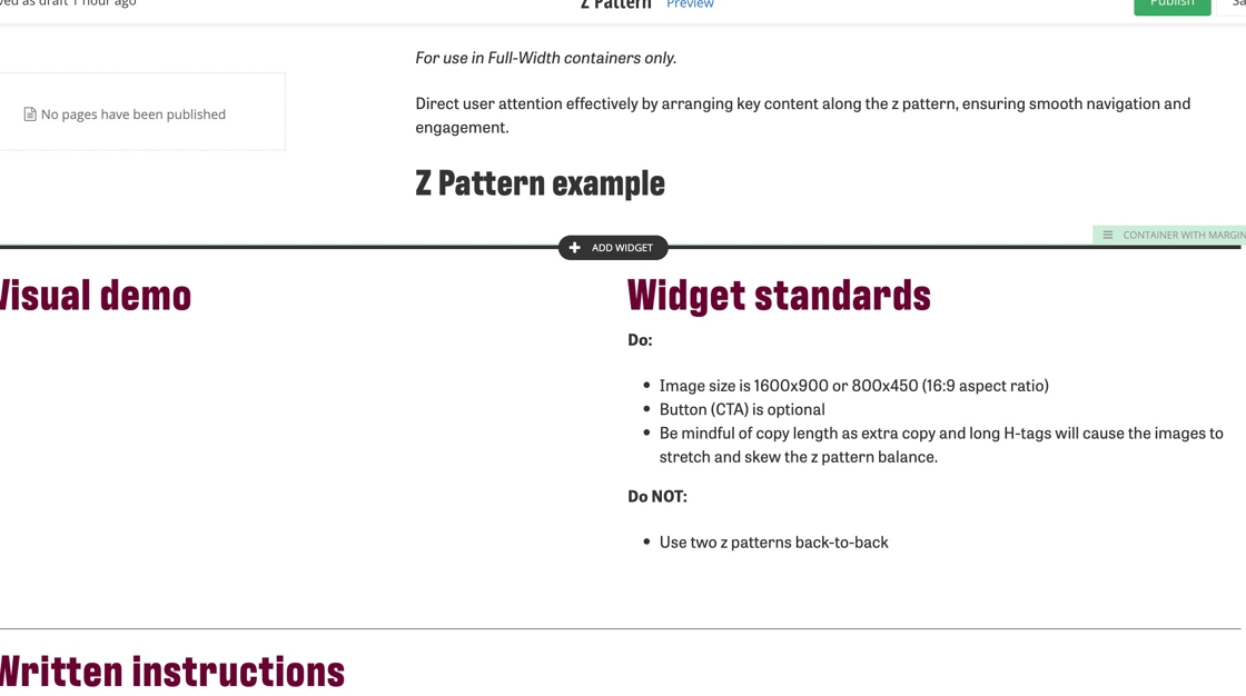 13. Your page will now have a z pattern widget on it. It should look like the image below.