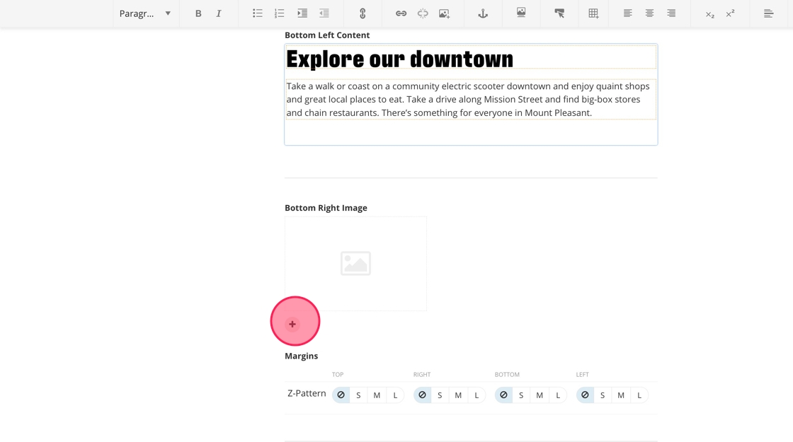 11. Add an image to the Bottom Right Image section by clicking on the +.